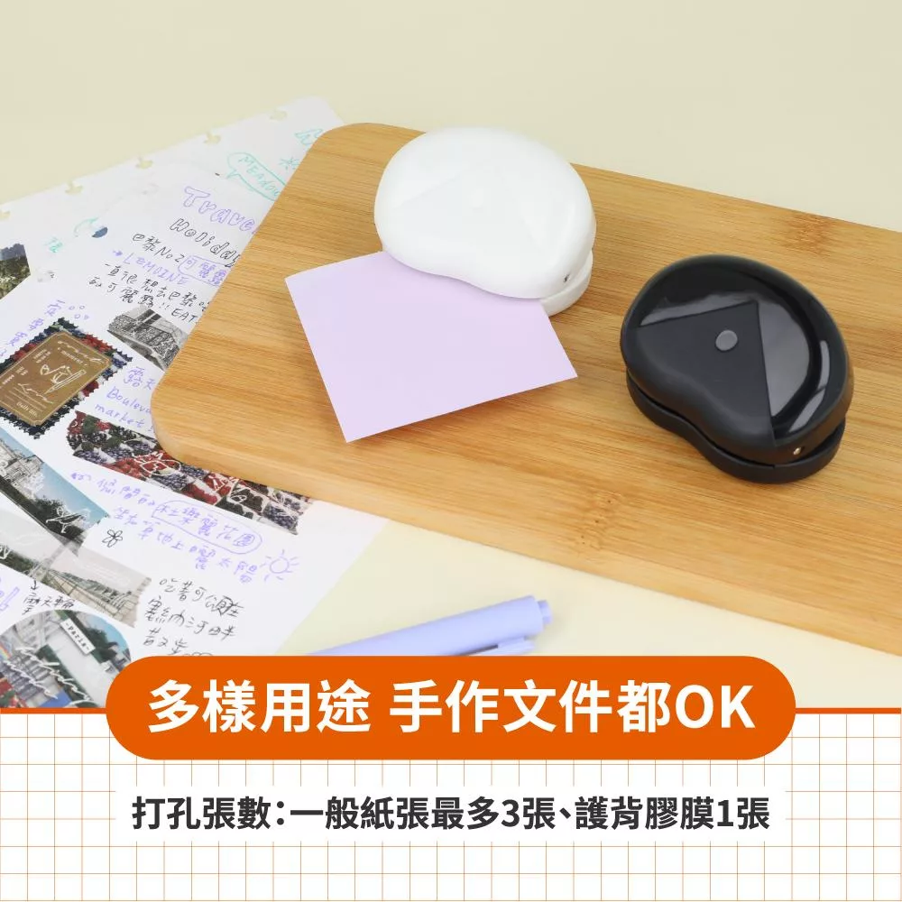 打孔張數:一般紙張(64g/m⊃2;)3張、護背膠膜(100微米)1張