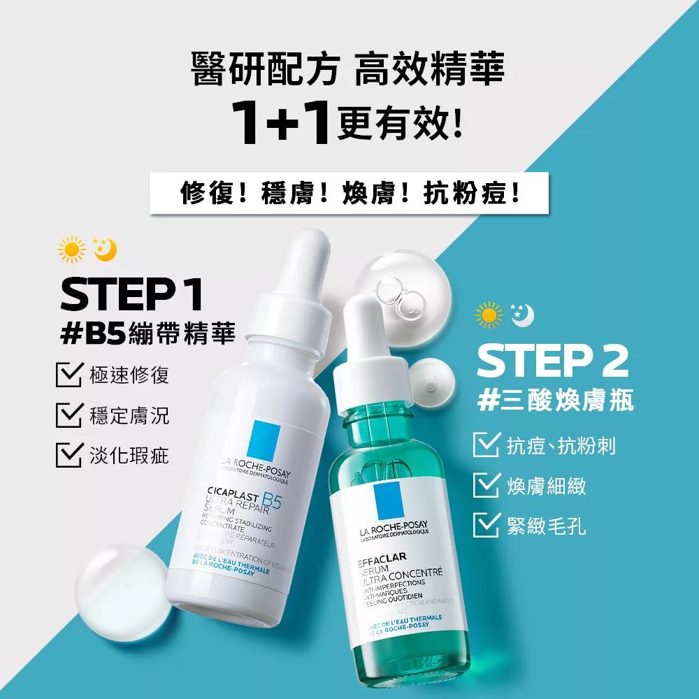 【理膚寶水】極效三重酸煥膚精華 30ml+淨痘無瑕極效精華 DUO+M 40ml 獨家特談組(痘痘粉刺/長效控油)_贈品最低效期2027/3/1