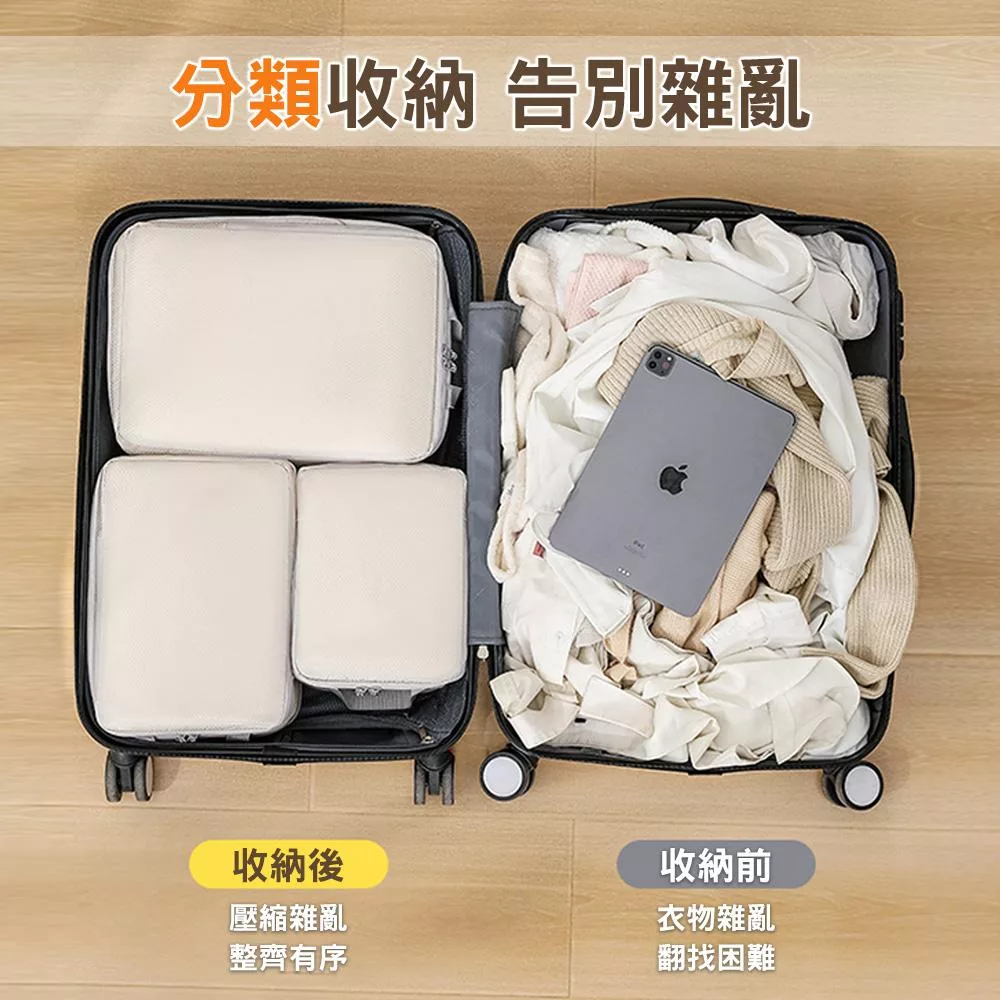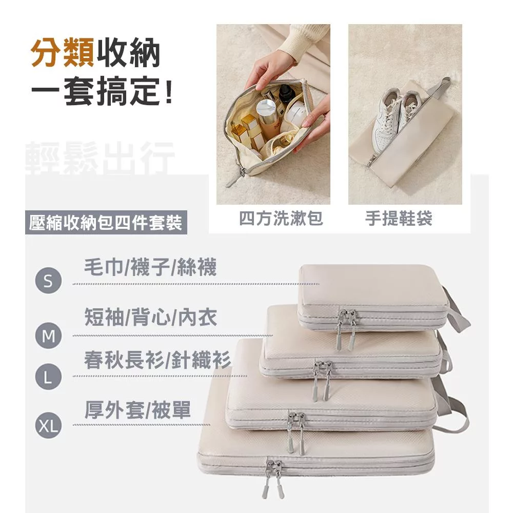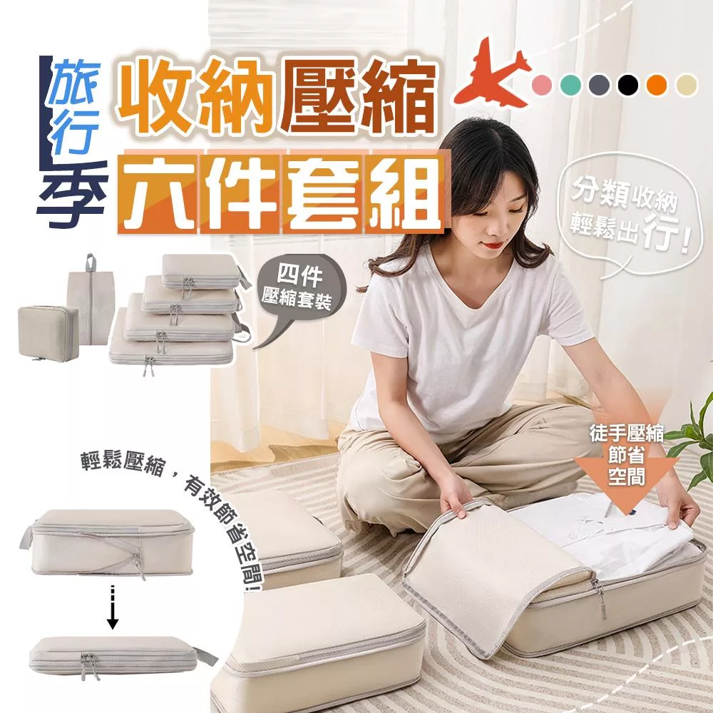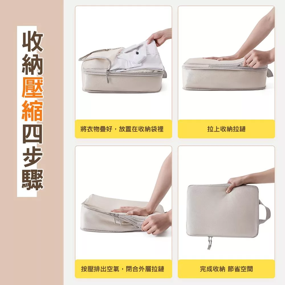 【EZlife】高質感旅行收納壓縮袋六件組 米色