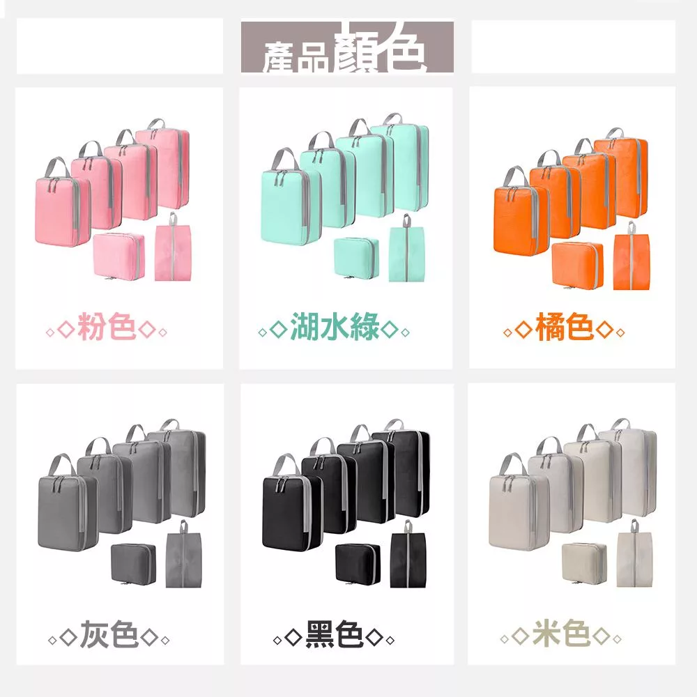 【太力】旅行季壓縮旅行收納袋六件組 (衣物/鞋袋/盥洗包/化妝包/行李箱/壓縮袋) 粉紅色