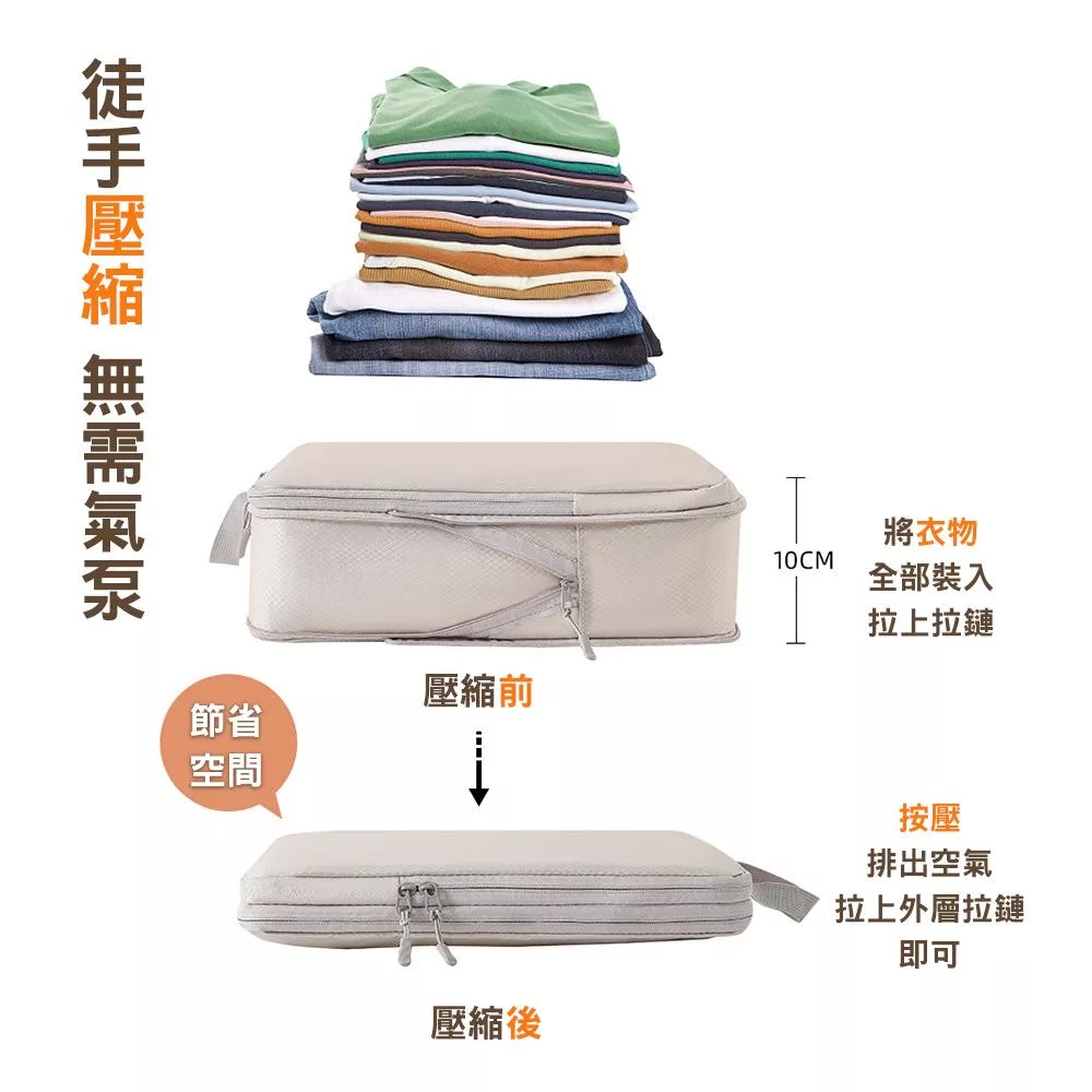 【E.dot】旅行必備雙層壓縮收納袋 大號-燕麥膚