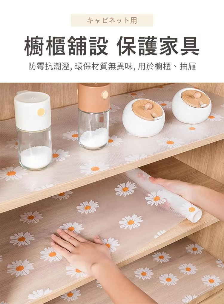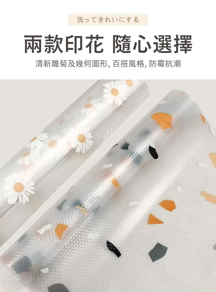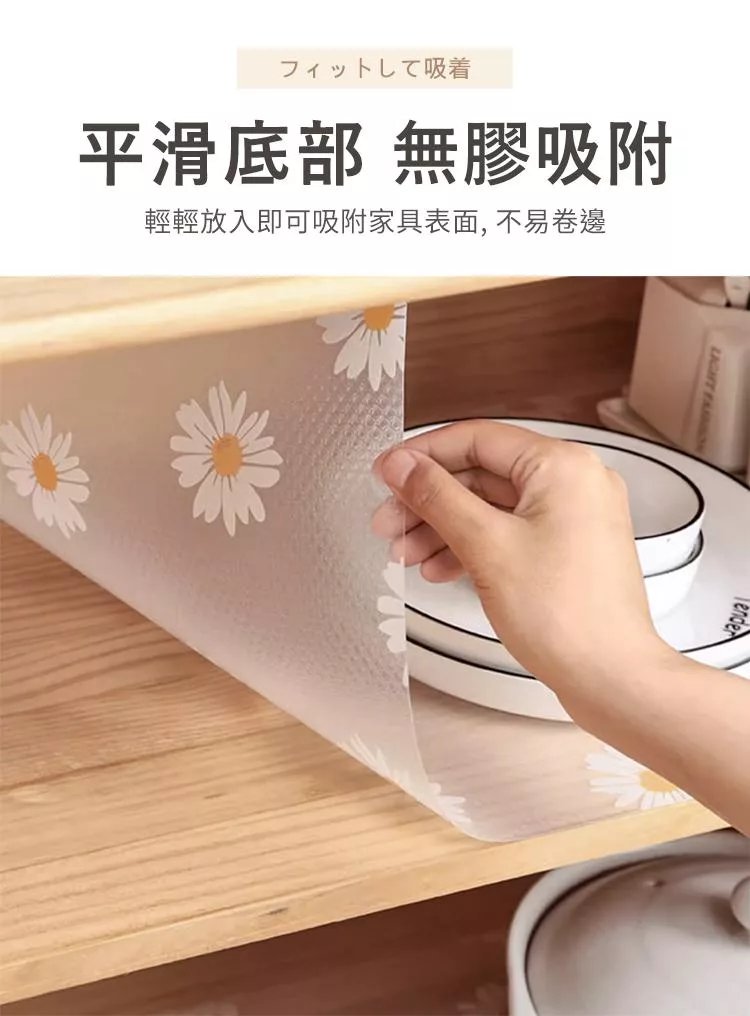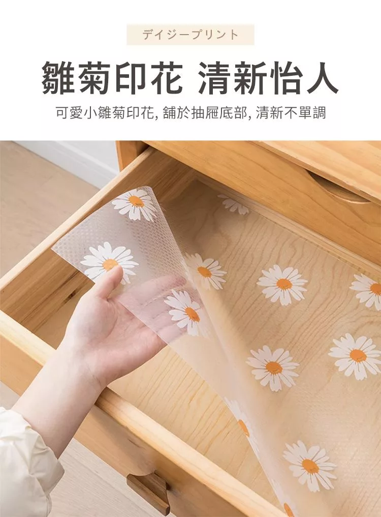 【E.dot】透明印花防霉防潮抽屜防滑墊 (廚櫃墊 / 桌墊 / 保潔墊) 雛菊