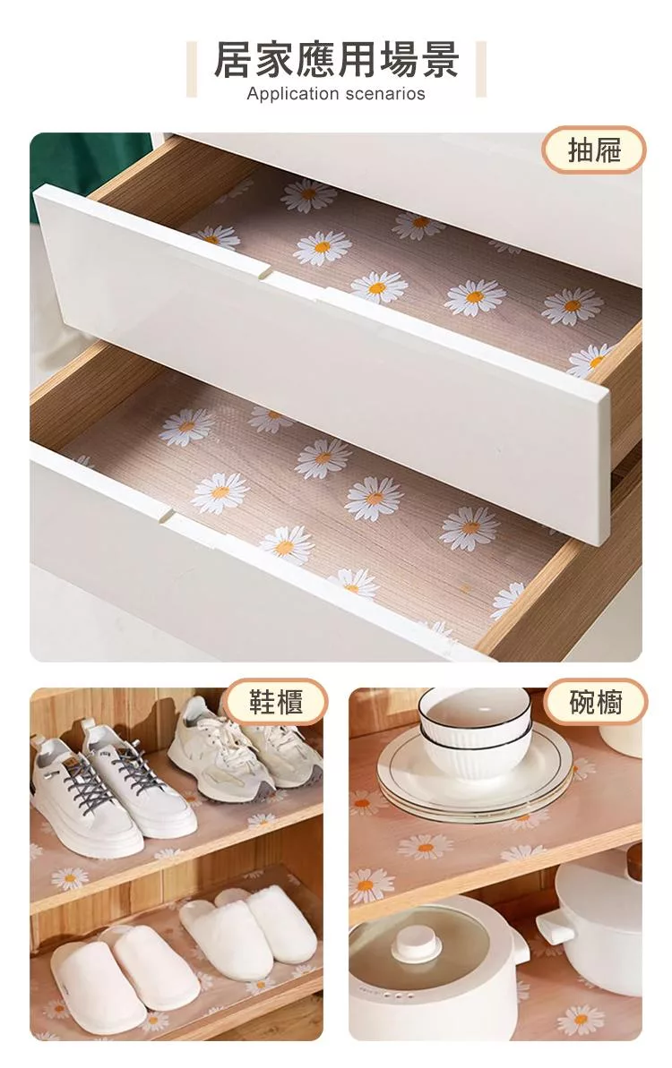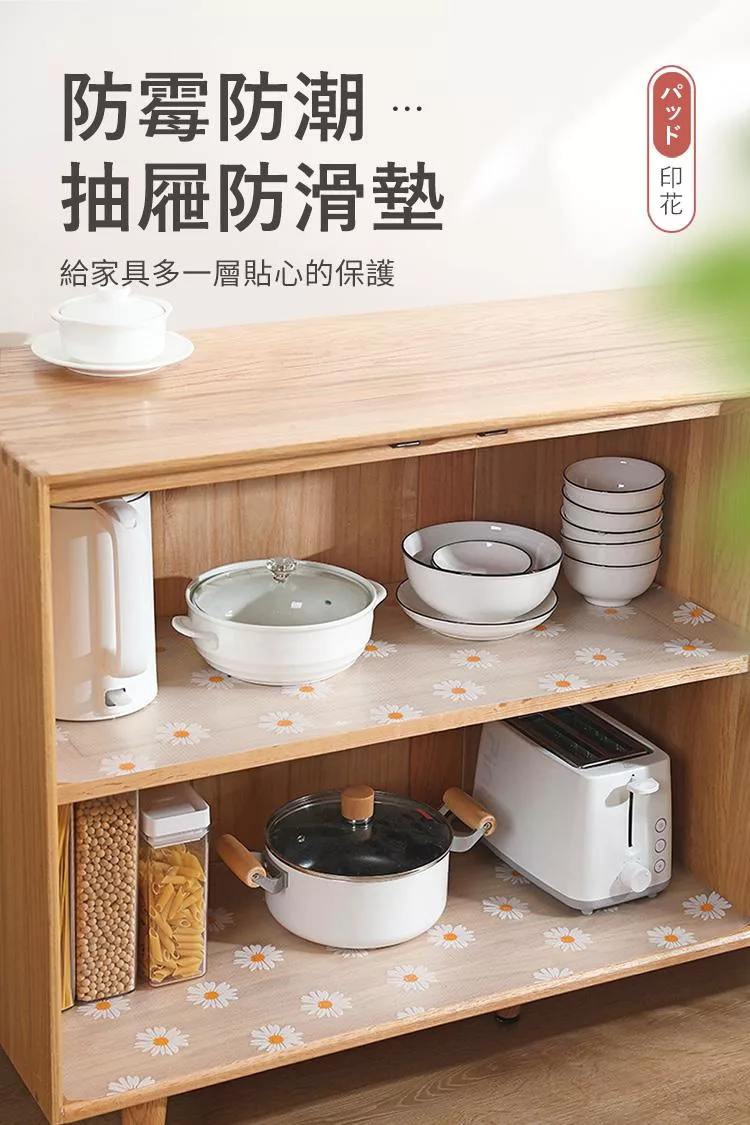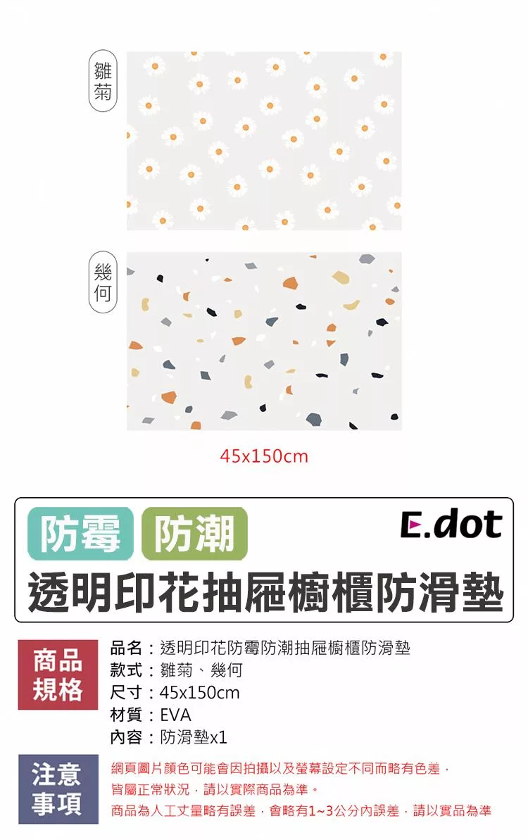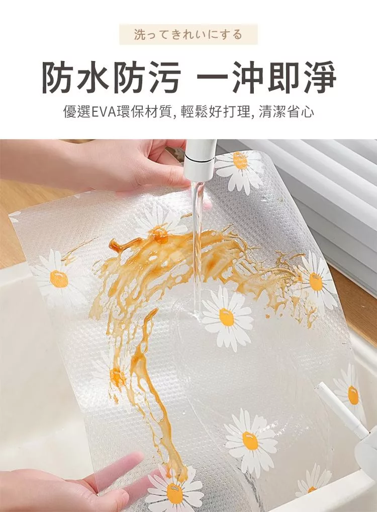 【E.dot】透明印花防霉防潮抽屜防滑墊 (廚櫃墊 / 桌墊 / 保潔墊) 雛菊