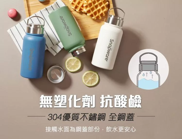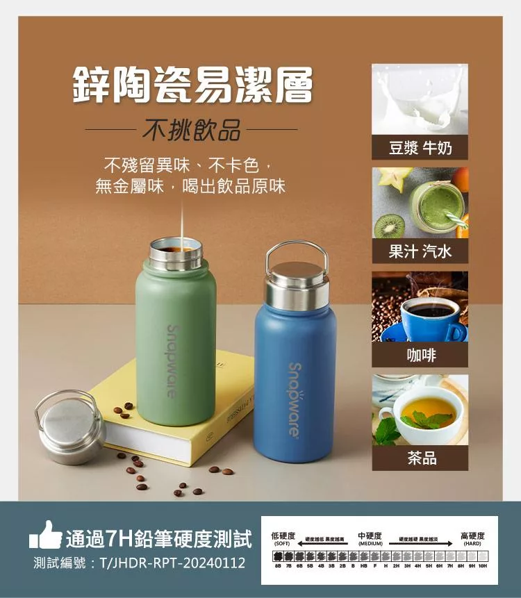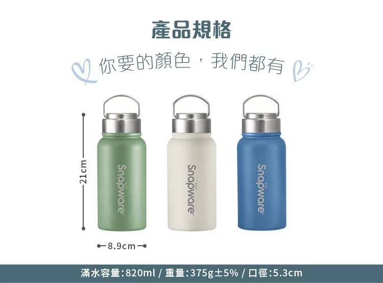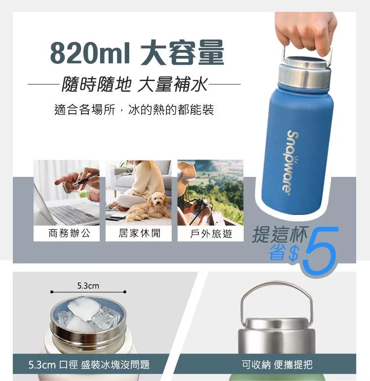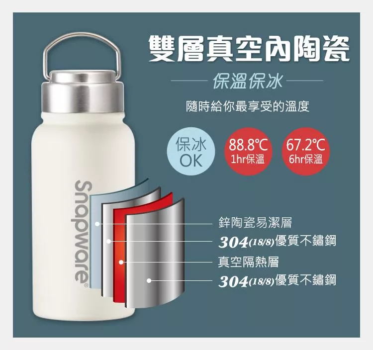 買一送一【美國康寧】Snapware 鋅light輕瓷超真空手提保溫杯820ml