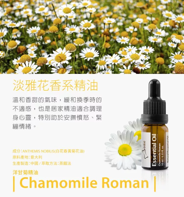 。芬芳柔和的洋甘菊香氣,適合調理身心靈,有助於放鬆、舒緩
