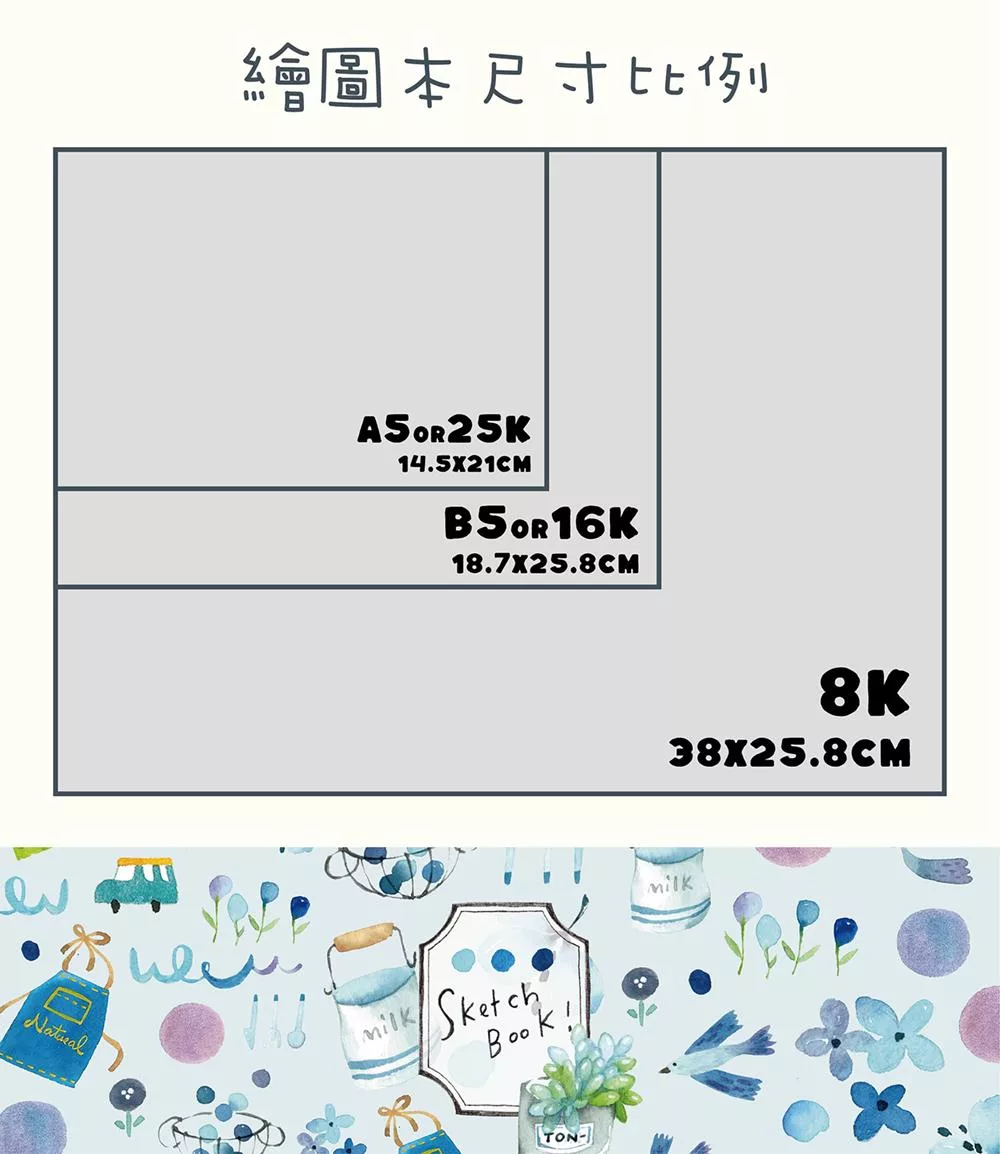 封底裱上厚卡 方便外出寫生,可180度攤平 糊頭裝訂好撕,可當素描本、兒童繪本或剪貼本 。