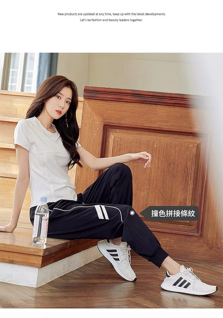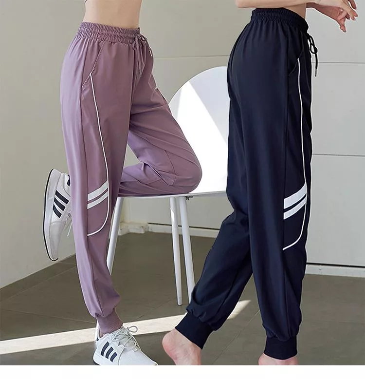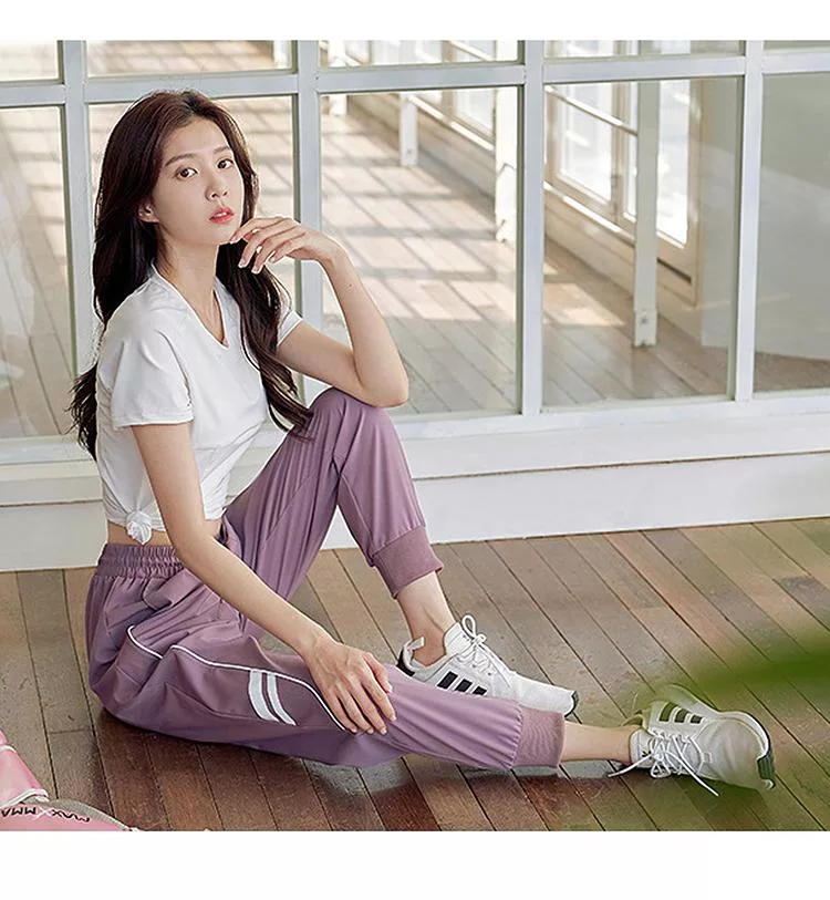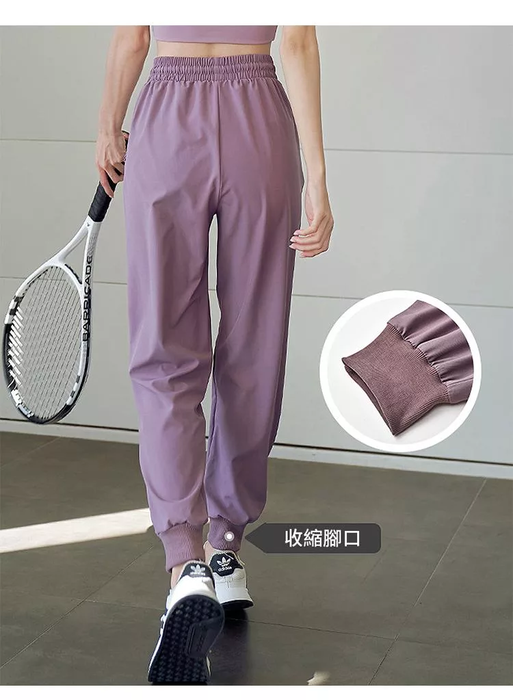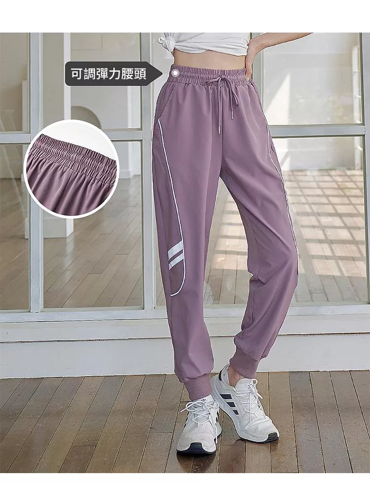 【初色】撞色拼接高腰寬鬆束口薄款休閒褲瑜珈褲運動褲長褲-共2色-37962(M-XL可選) M 紫色