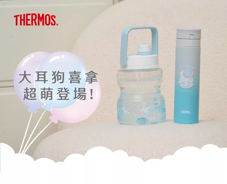 【THERMOS膳魔師】Hello Kitty 不鏽鋼可提式真空保溫瓶550ml(JOS-550KT-SS)(夏日貝殼篇)