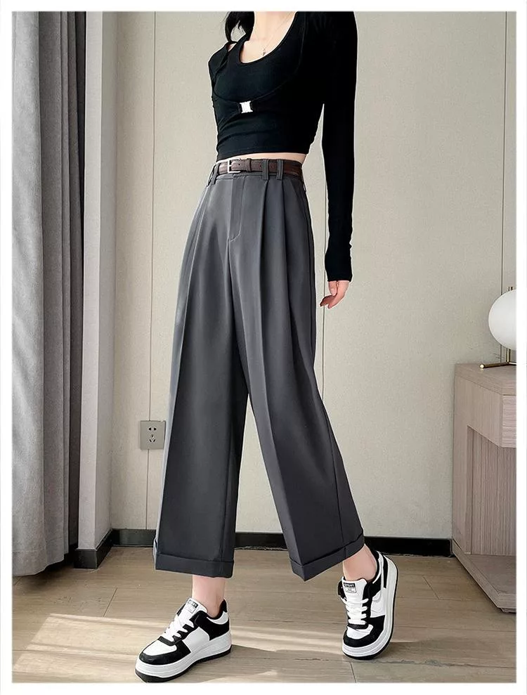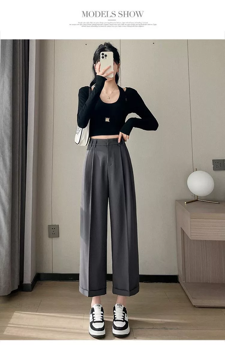 【Jilli~ko】窄版捲邊西裝褲女九分直筒褲設計感休閒闊腿褲 L-XL J11977  L 卡其色