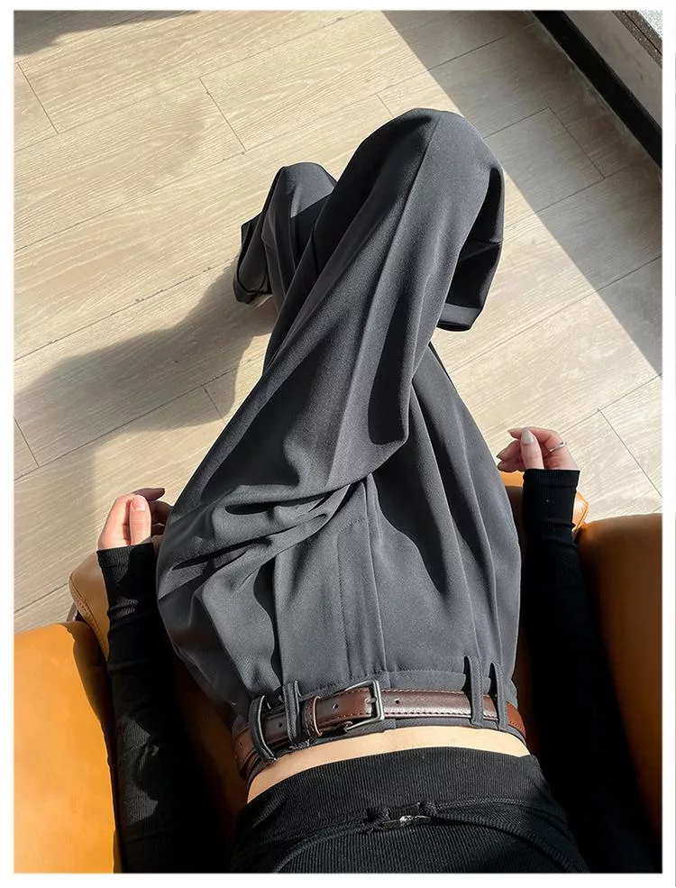 【AMIEE】設計感百搭顯瘦闊腿褲(KDPQ-9478) XL 黑灰
