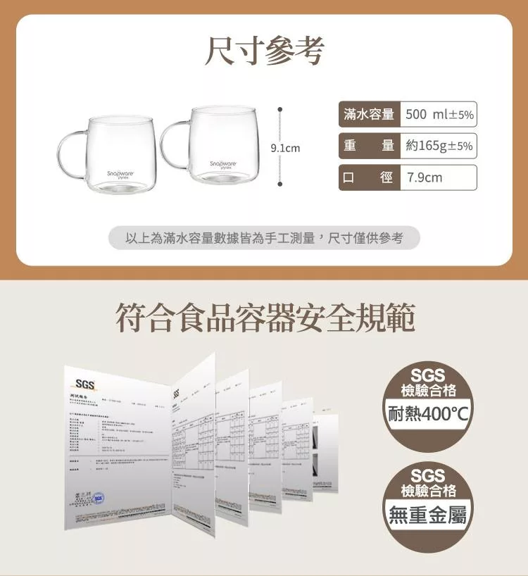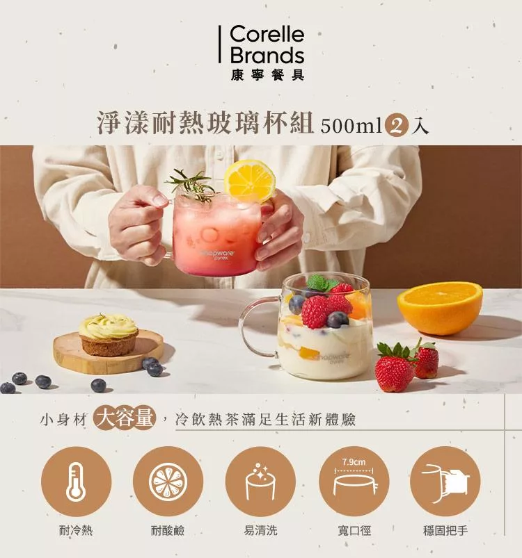 【美國康寧】Snapware 淨漾耐熱玻璃杯500ml兩入組