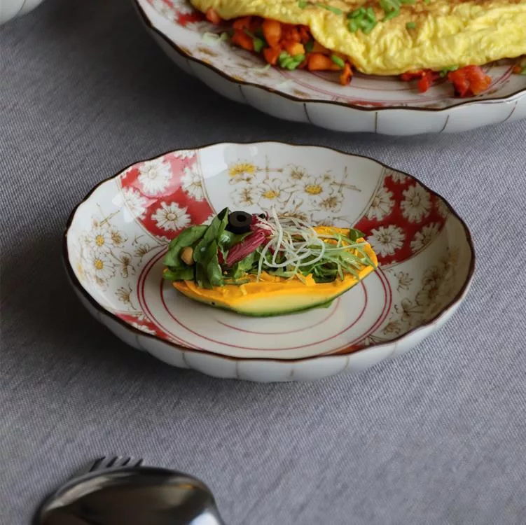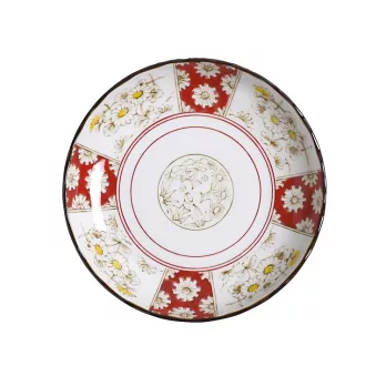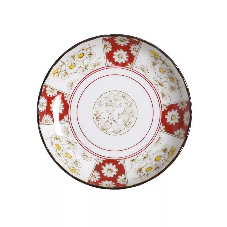將象徵幸福與繁榮的菊花圖案, 細膩地呈現在陶瓷器皿上,
