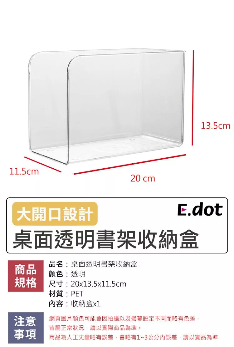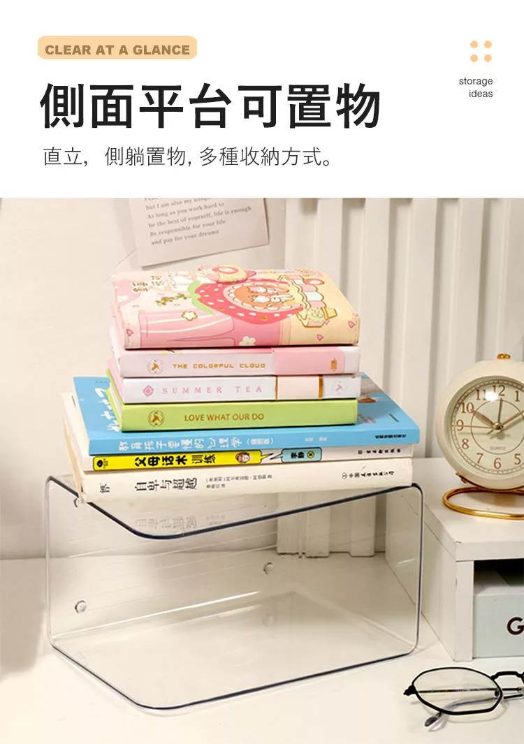 【E.dot】L型書架透明收納盒 (桌面收納盒)