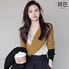 【Jilli~ko】假兩件簡約百搭小V翻領撞色針織衫 J9794 FREE 咖啡色