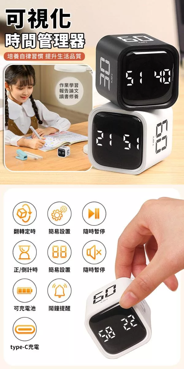 【EZlife】立方時間管理學習定時器 (15-20-30-60分鐘) 黑色