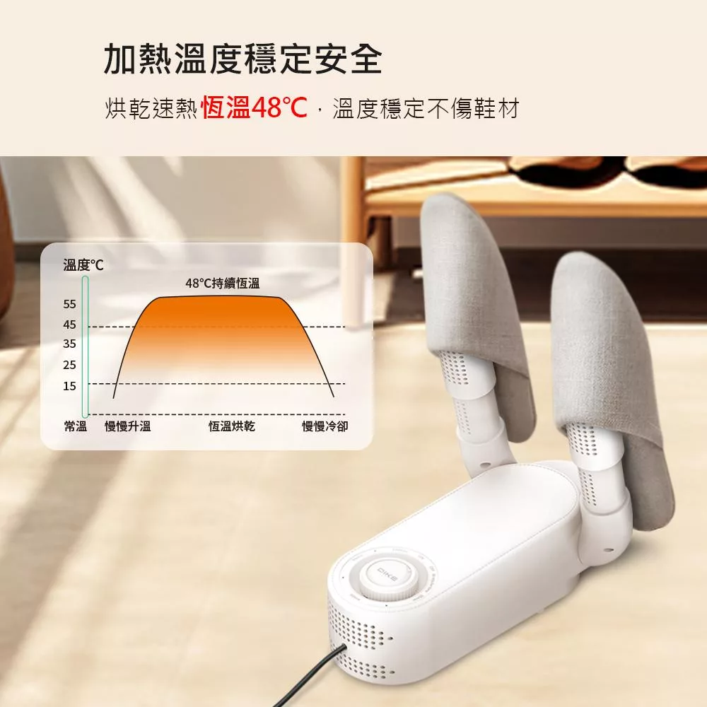 | ●紫外線+活性碳顆粒 360度零死角循環出風口、強效紫外線殺菌,內附活性碳顆粒,加強去除濕氣及異味。 ●鞋襪織品皆可烘 各種鞋款、不挑鞋型大小皆可使用,襪子及織品也可烘,一機就可滿足全家人的需求。 ●無段式定時使用更便利 120分鐘內可自行設定使用時間,不受固定時間限制,可依照鞋子材質或濕度随意調整。 ●加熱溫度穩定安全 PTC陶瓷發熱,烘乾速熱恆溫48C,溫度穩定不傷鞋材,採用安全防火塑料精緻,安全無虞。 |