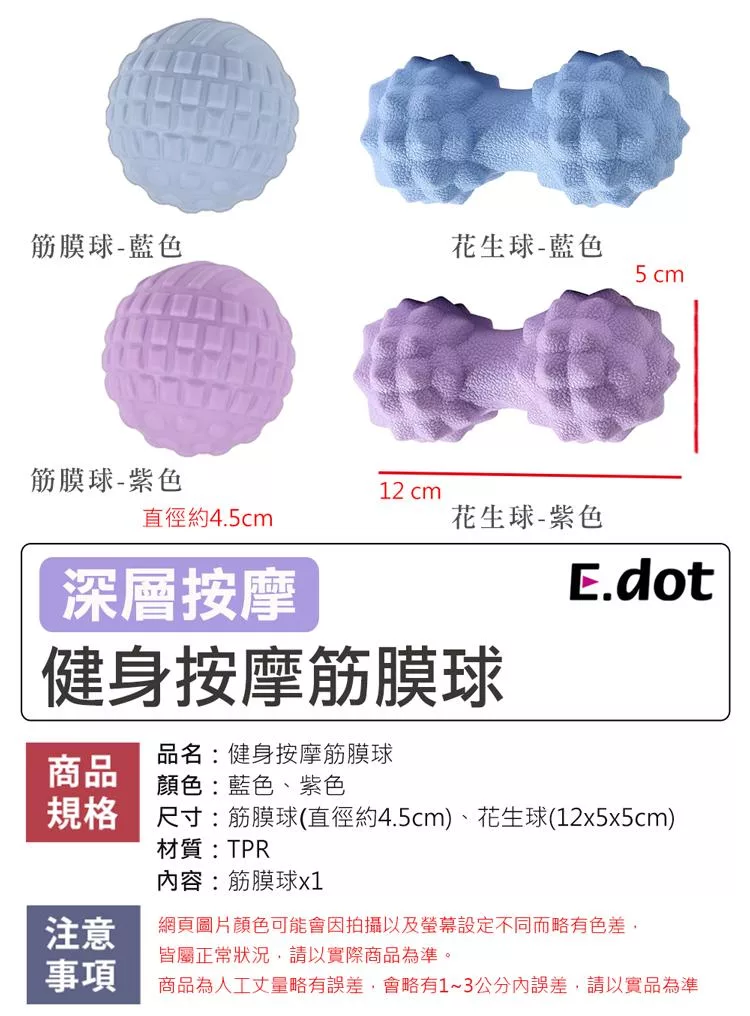 【E.dot】健身舒緩筋膜彈力按摩球 (筋膜球) 紫色
