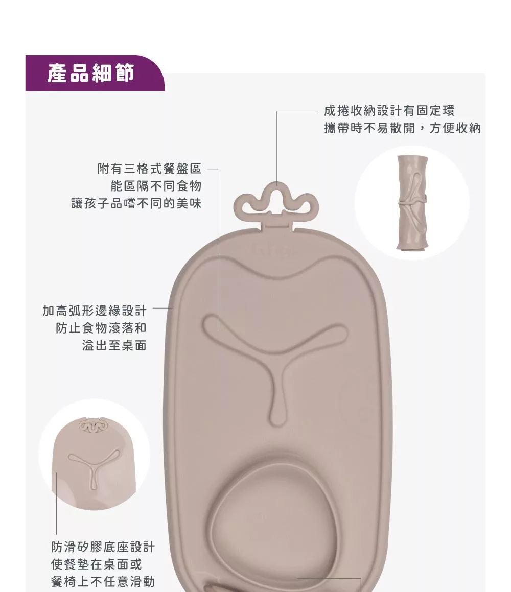 矽膠環固定捲起的墊子,方便外出餵食時使用