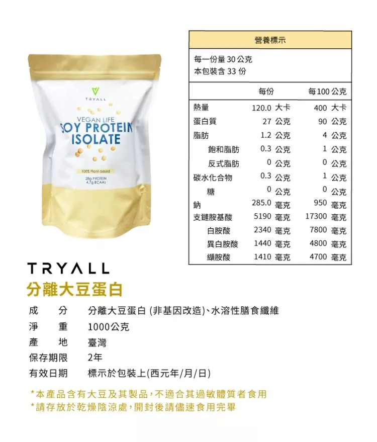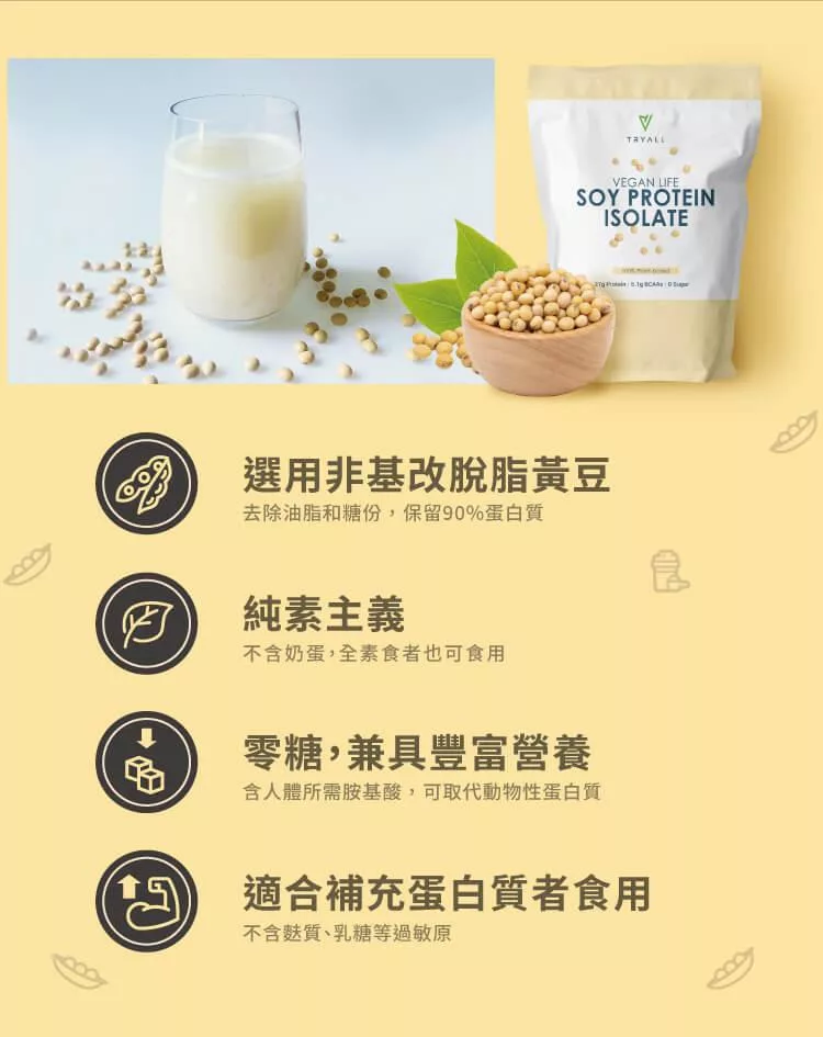 ● 每份大豆蛋白(30公克)中約含5.1公克BCAA