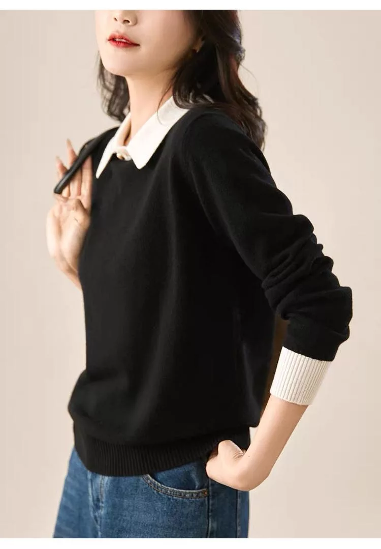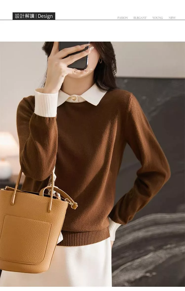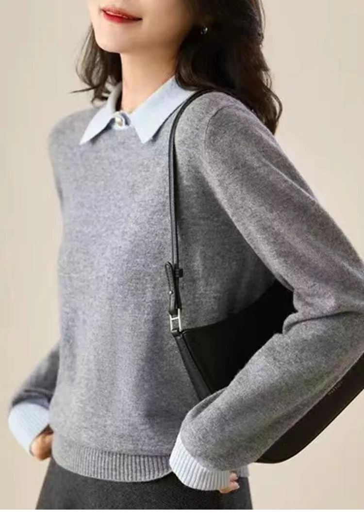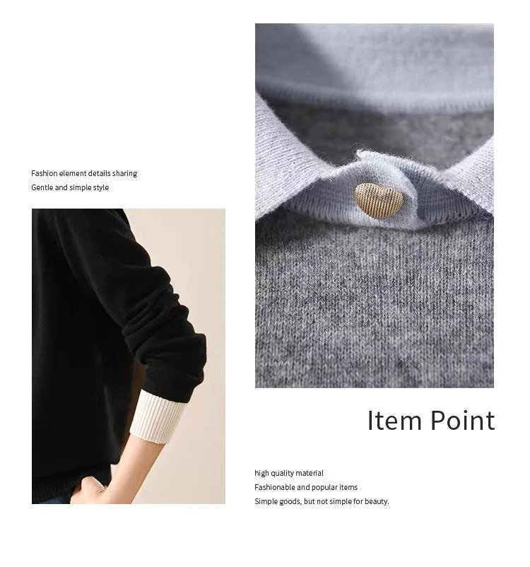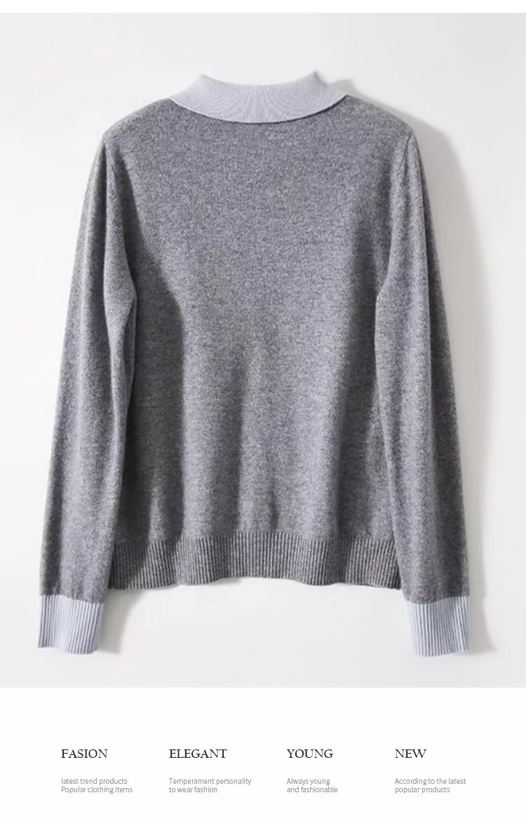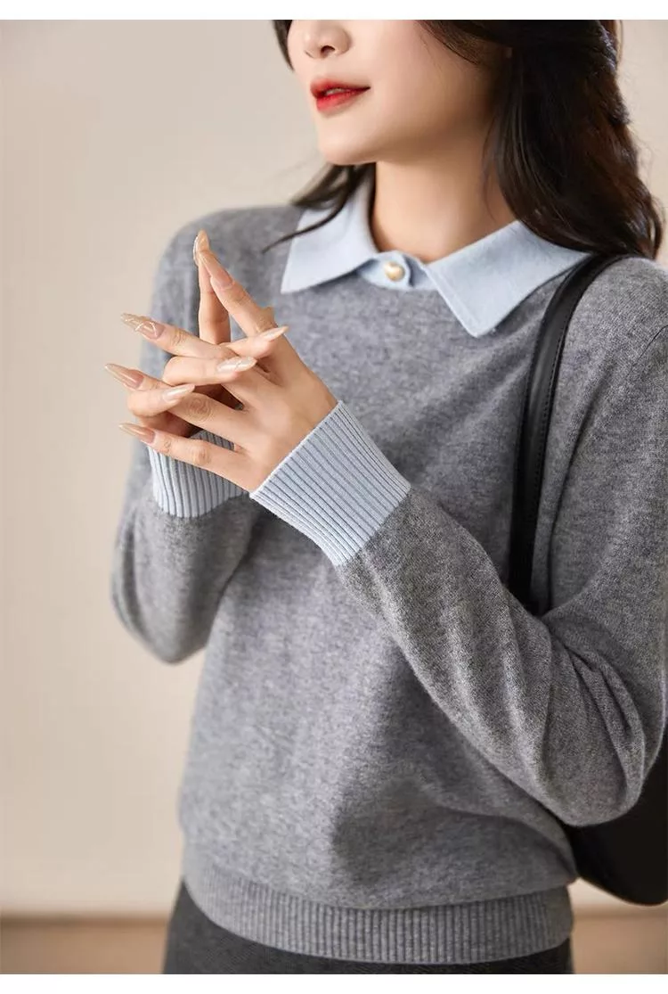 【初色】學院風撞色翻領羊毛針織長袖套衫上衣女上衣-共3色-37550(F可選) F 灰色