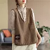 【慢。生活】文藝復古V領大碼寬鬆棉線針織馬甲 2634 FREE 卡其色