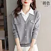 【初色】小香風純色假兩件單排釦針織長袖襯衫上衣女上衣-共4色-38002(F可選) F 灰色