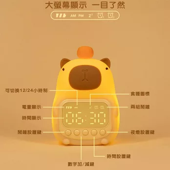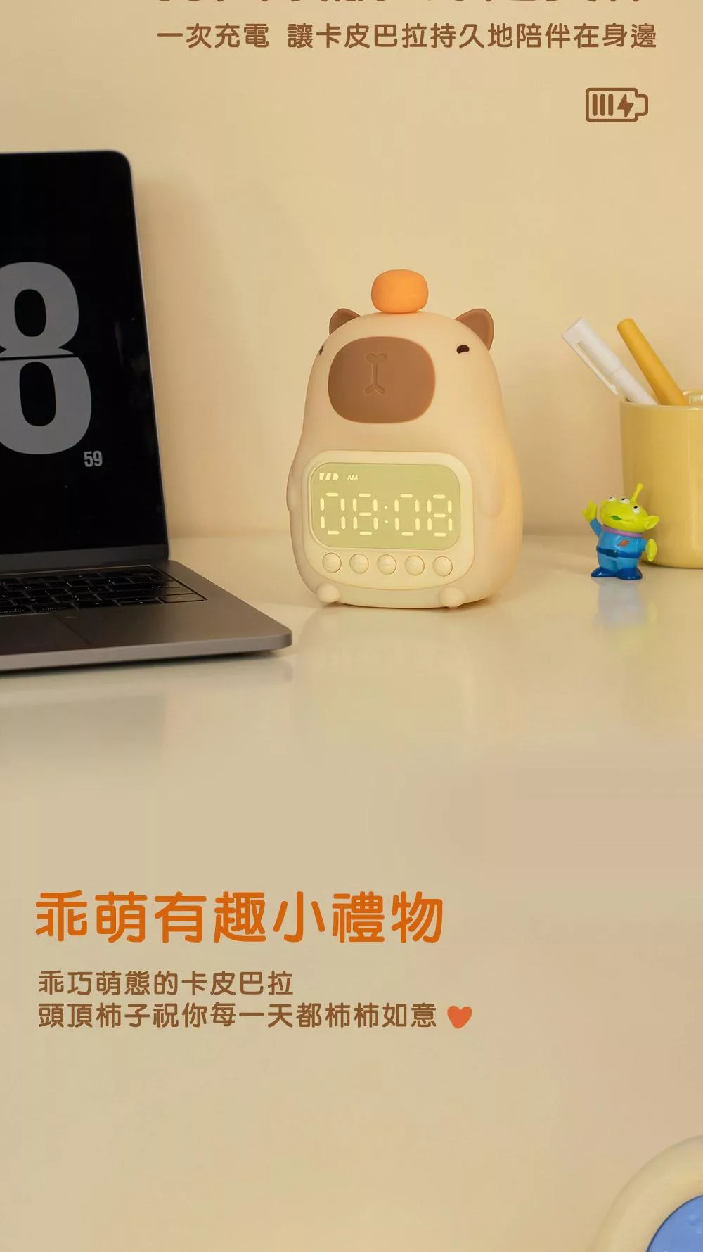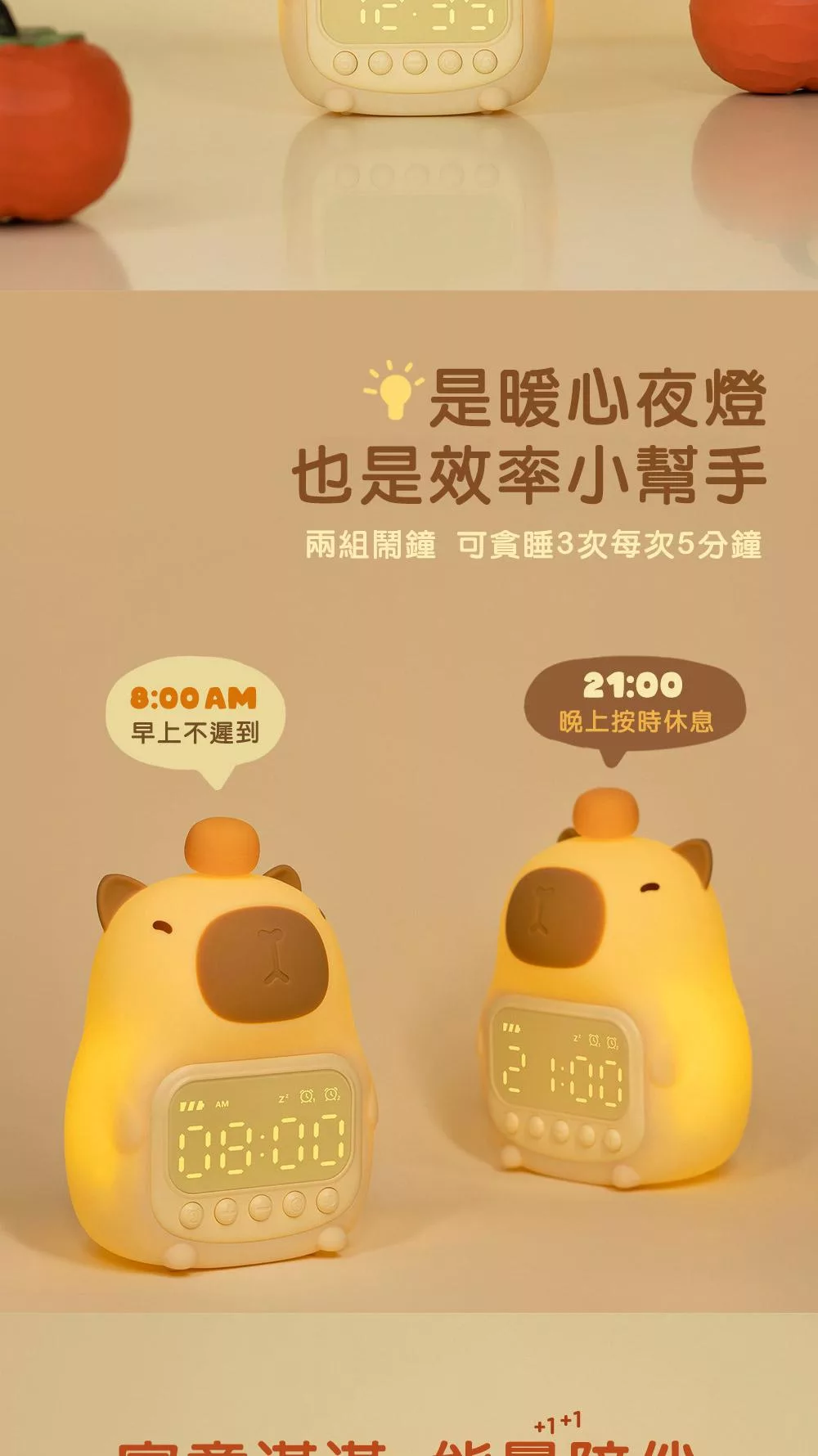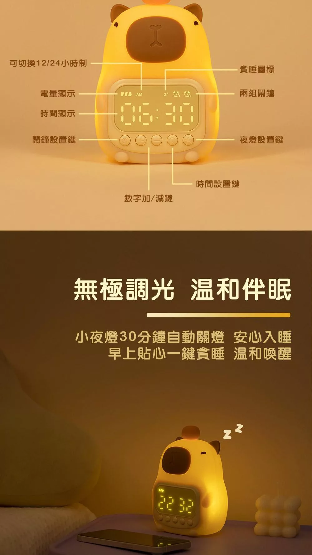 卡皮巴拉鬧鐘小夜燈 卡巴拉鬧鐘燈 矽膠 水豚君矽膠鬧鐘燈 數字時鐘 電子鬧鐘 電子鐘 時間管理