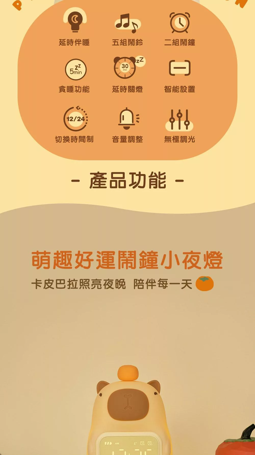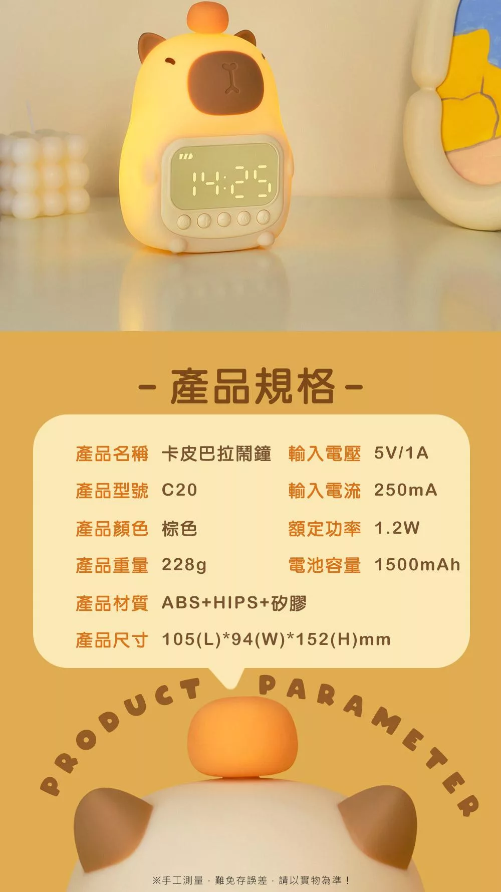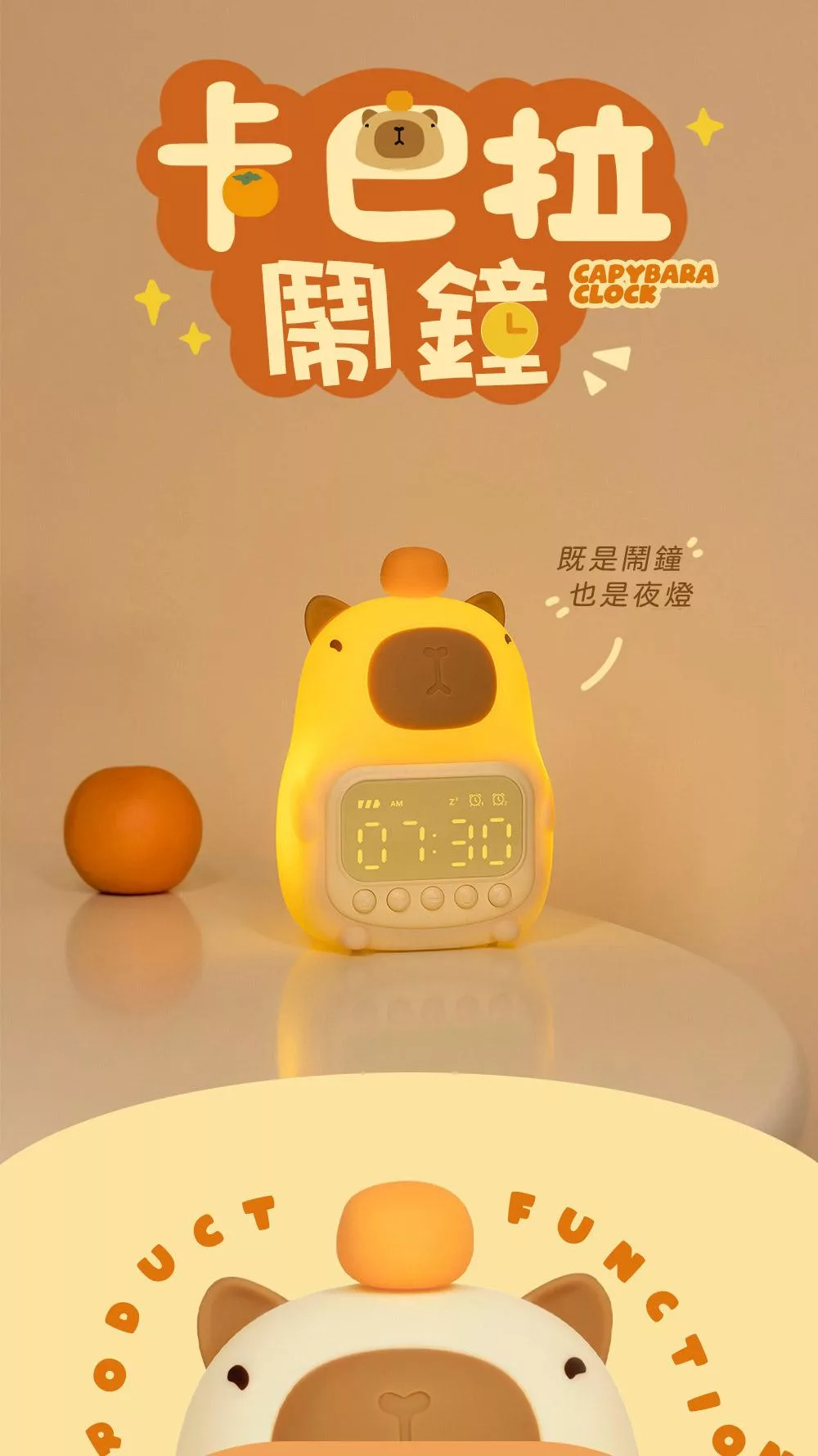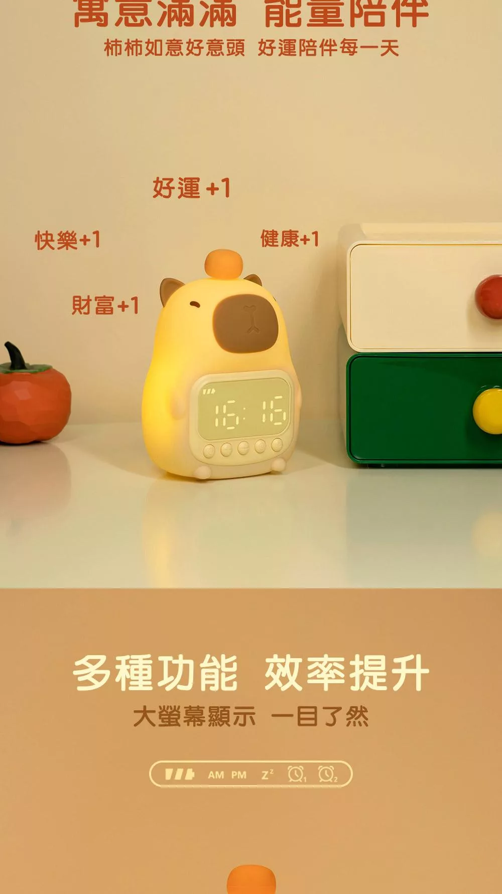 卡皮巴拉鬧鐘小夜燈 卡巴拉鬧鐘燈 矽膠 水豚君矽膠鬧鐘燈 數字時鐘 電子鬧鐘 電子鐘 時間管理