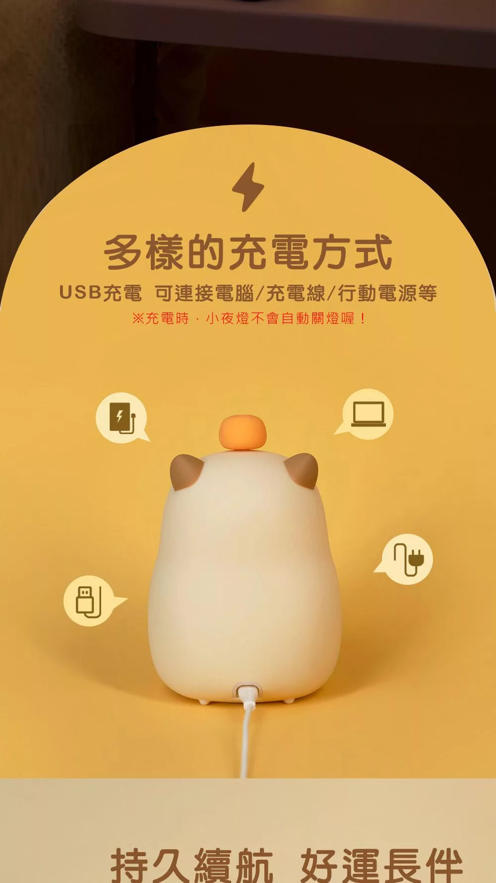 【美好家 Mehome】卡皮巴拉夜燈 水豚燈 矽膠拍拍燈 伴睡燈 (USB充電) 基本款