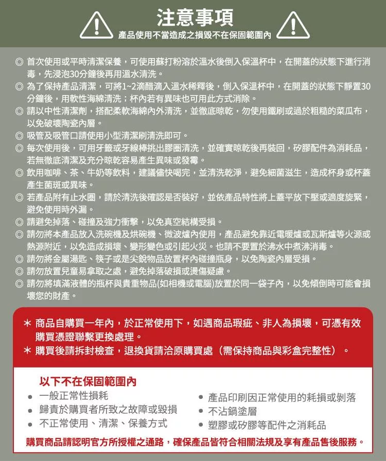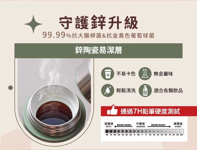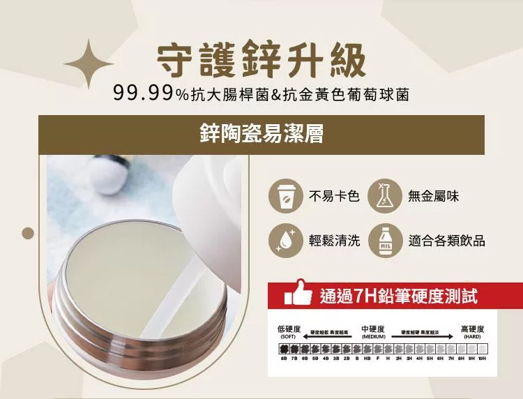 瓶身/(內)SUS304優質不鏽鋼+鋅陶瓷易潔層