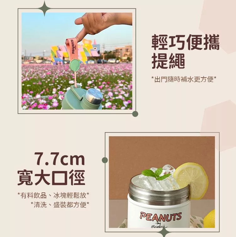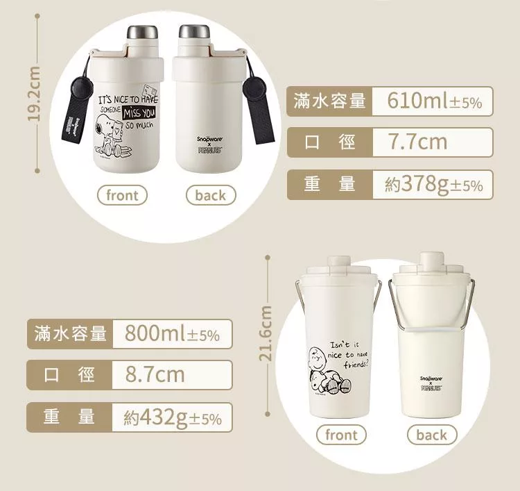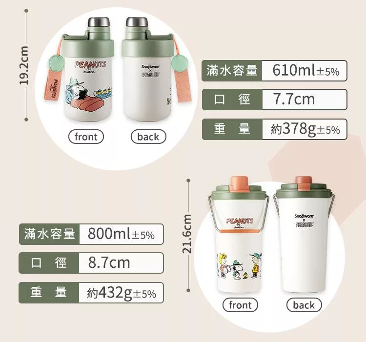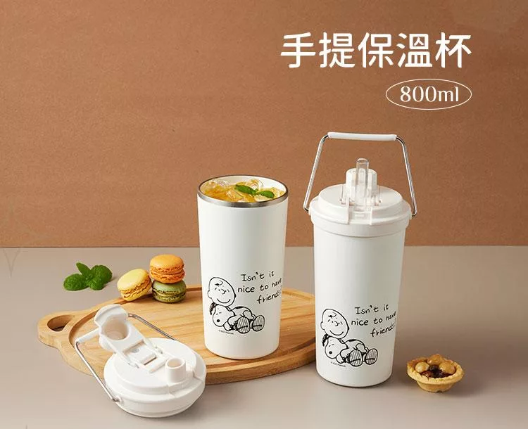 商品名稱:【美國康寧】Snapware SNOOPY 鋅動輕瓷大容量不鏽鋼手提保冰保溫杯-800ml
