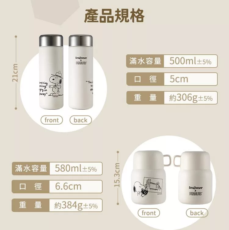 【美國康寧Snapware】 Snoopy史努比保溫杯兩入超值組-贈隨身瓶490ml