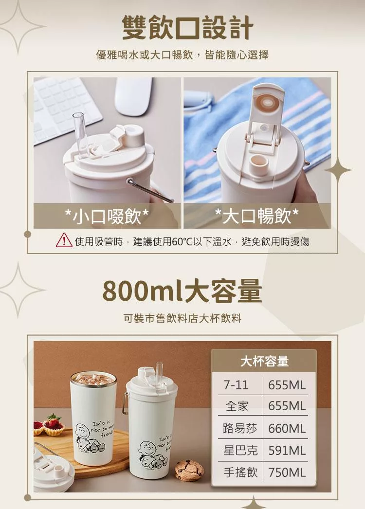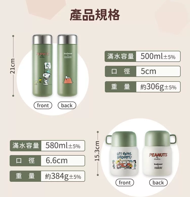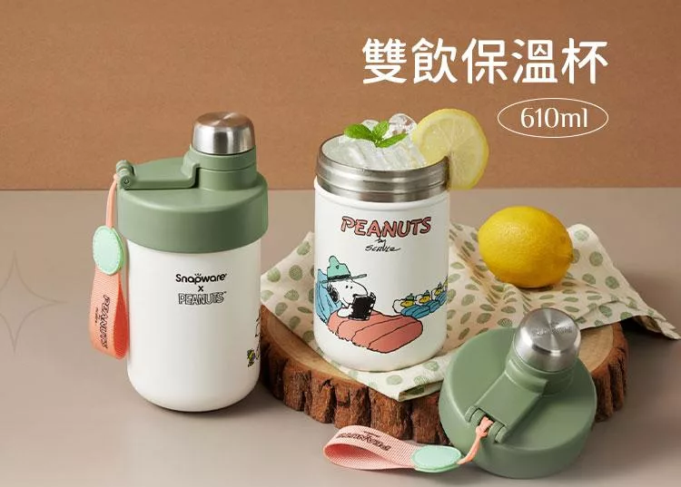 商品名稱:【美國康寧】Snapware SNOOPY 鋅動輕瓷不鏽鋼保冰保溫杯-雙飲610ml