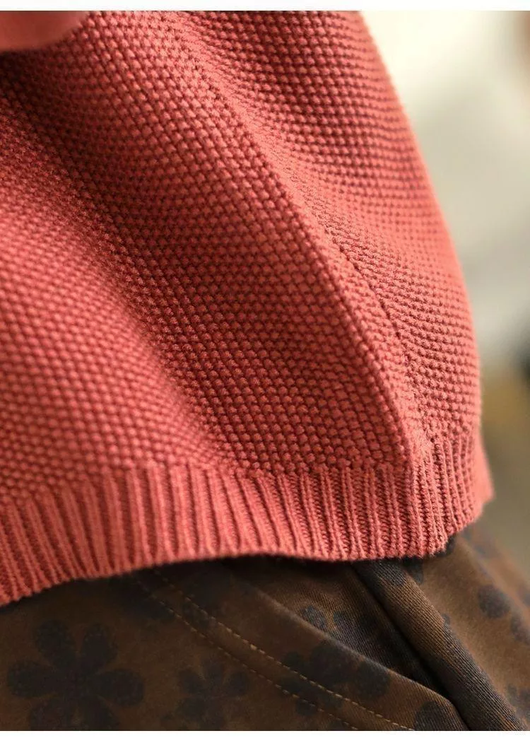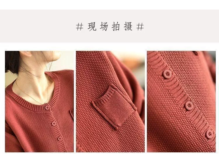 【慢。生活】圓弧下擺前短後長復古寬鬆長袖開扣針織衫 23875  FREE 紅色