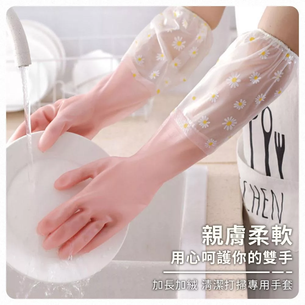 【EZlife】加厚加絨束口洗碗清潔手套(3雙組/款式顏色隨機出貨)