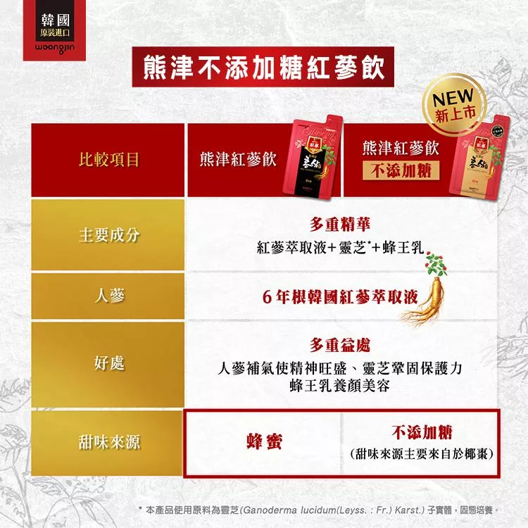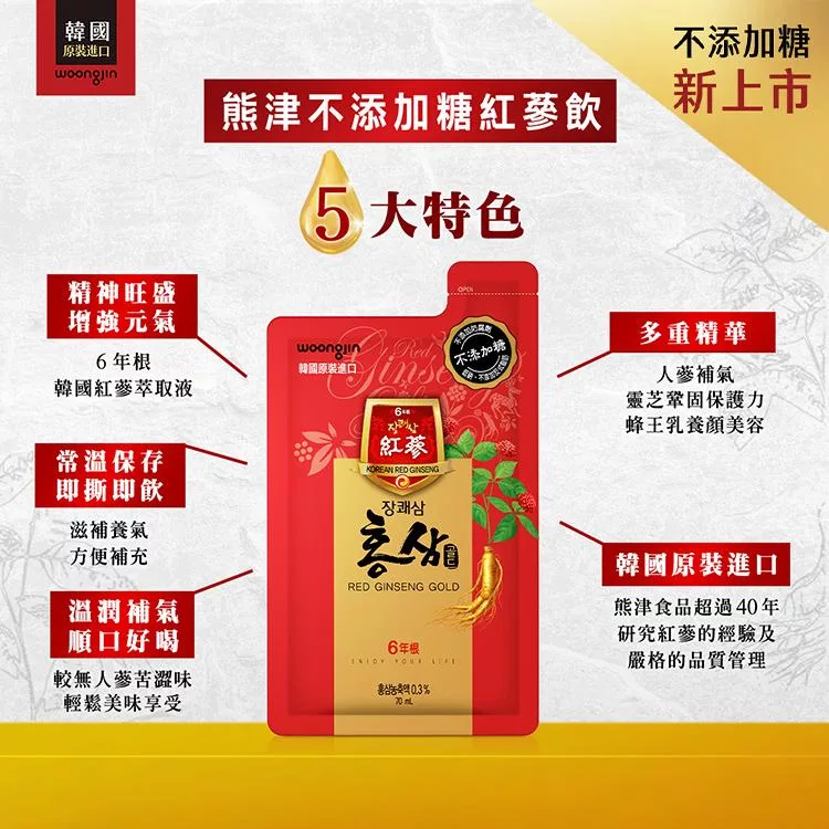溫潤補氣 順口好喝,較無人蔘苦澀味 輕鬆美味享受,養生新選擇,不添加糖 不易造成負擔