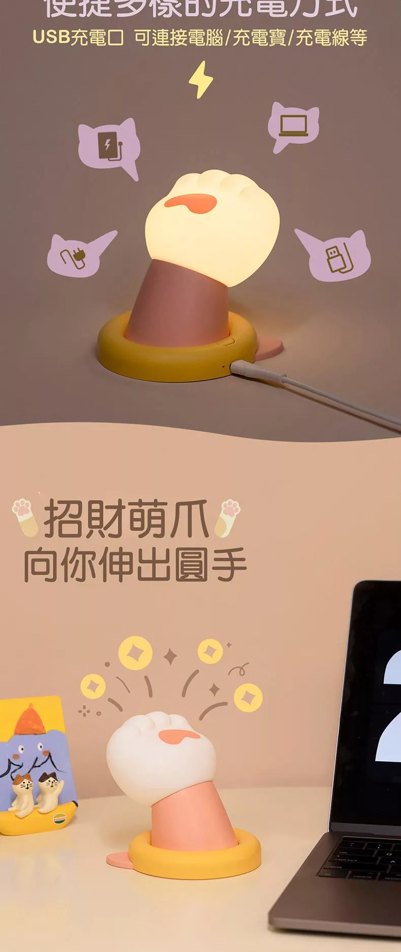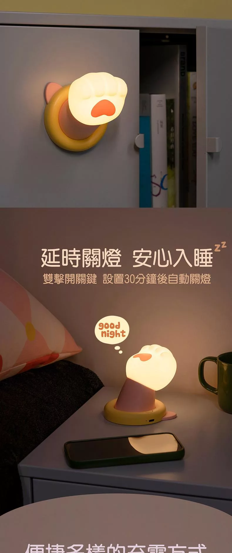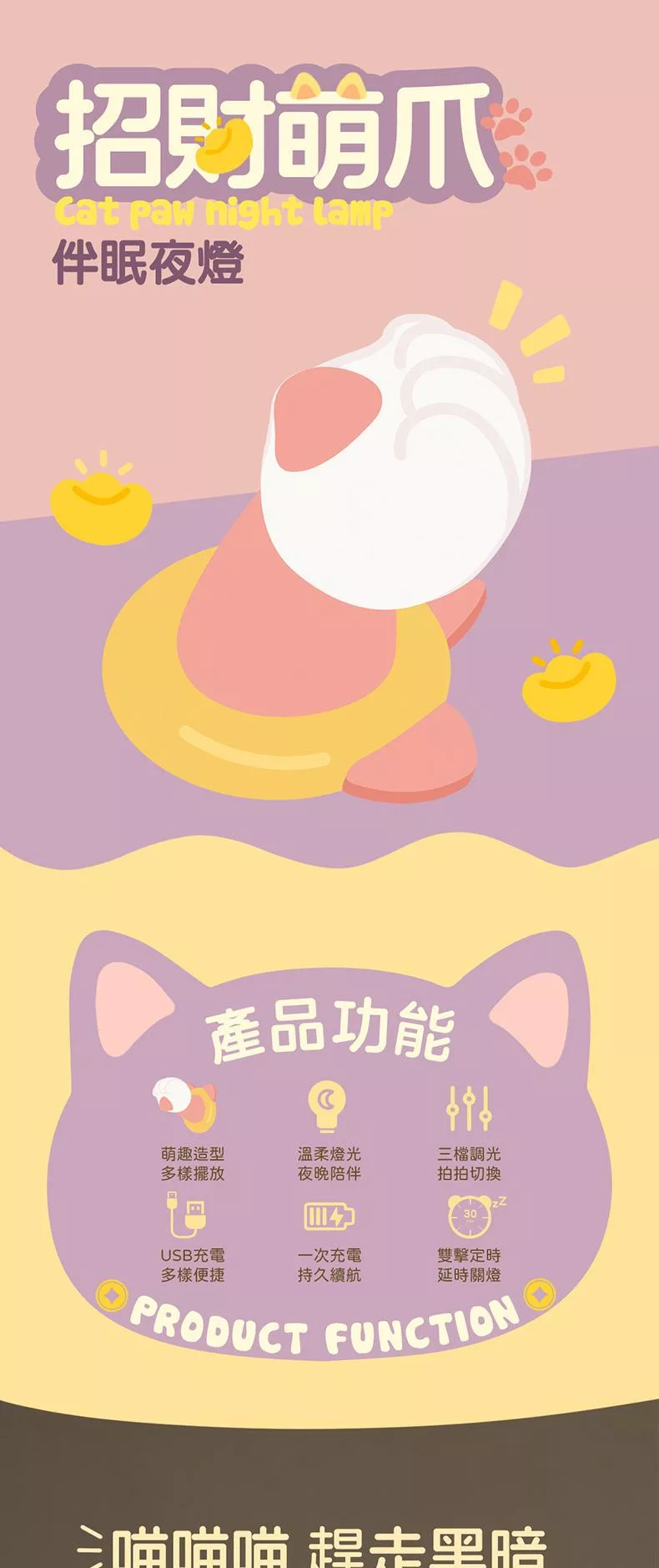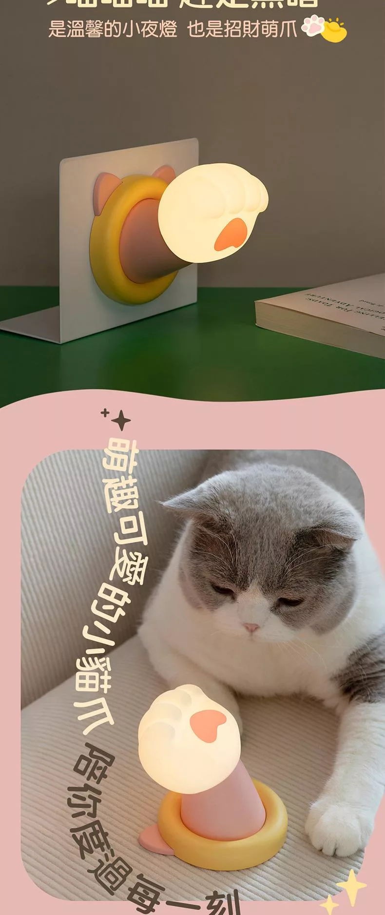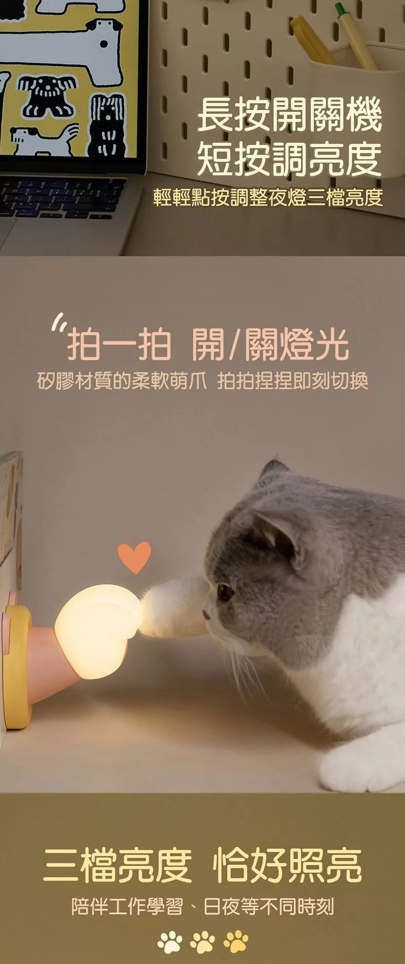 矽膠材質柔軟萌爪 輕輕一拍 開/關燈