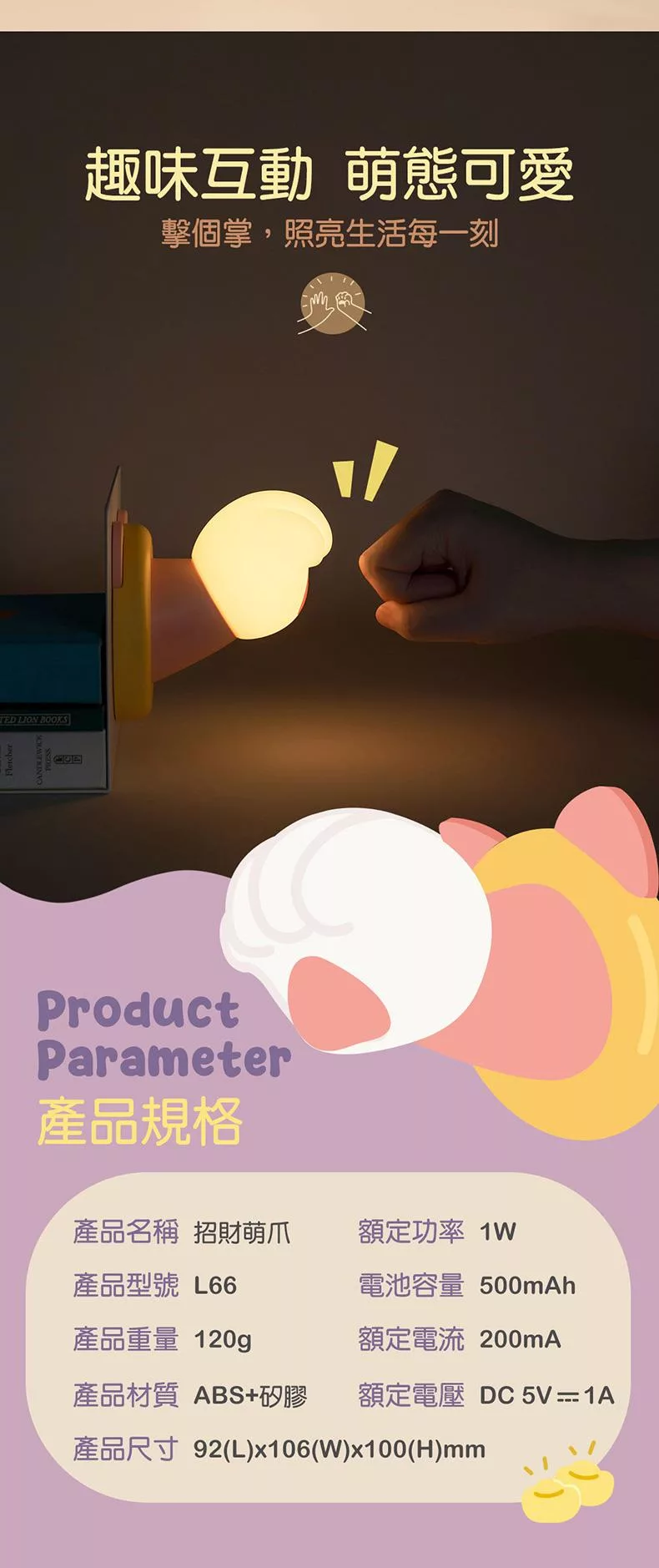 萌爪燈*1(彩盒裝) 說明書*1