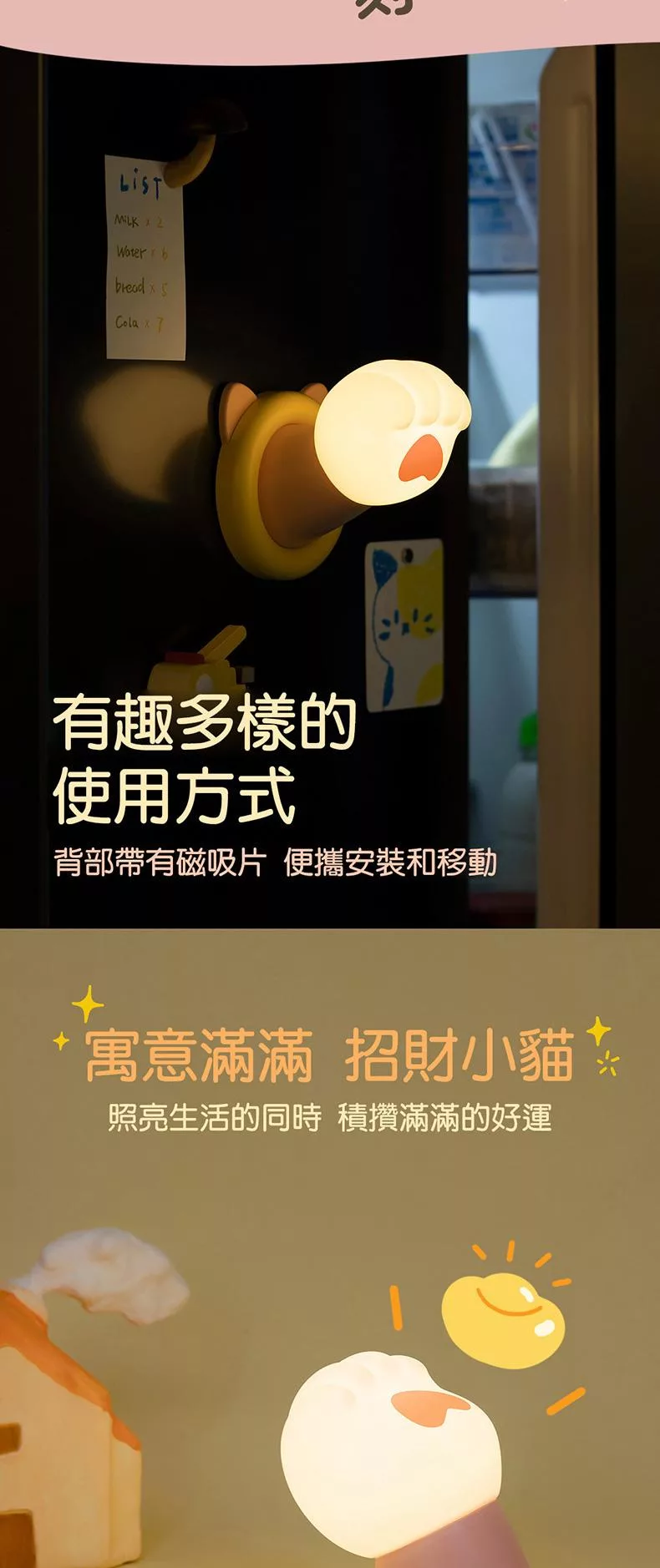 招財萌爪小夜燈 伸出貓爪小夜燈 磁吸小夜燈 貓爪小夜燈 LED睡眠夜燈 貓爪燈