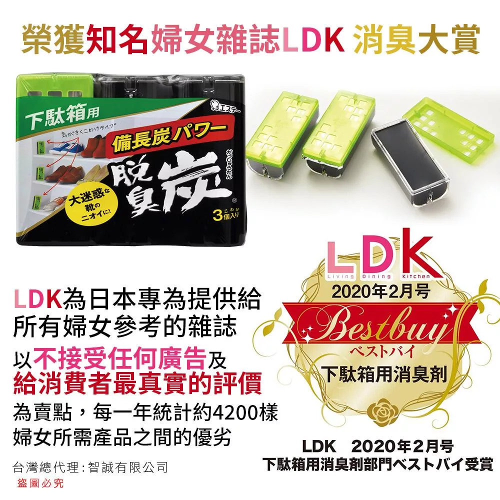 特長:搭配備長炭與活性炭的消臭劑,可強力除去鞋櫃內鞋子的悶臭味等!
