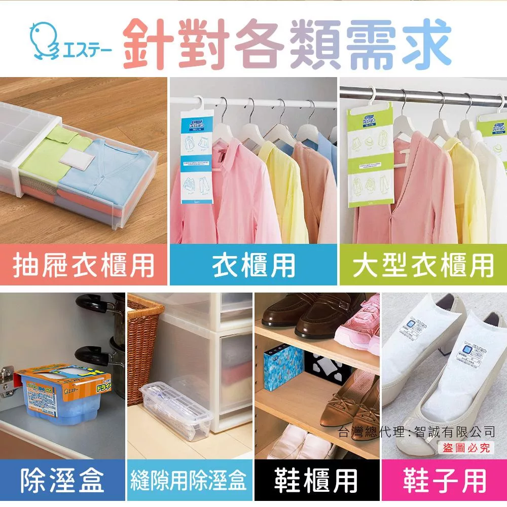 特長:充份吸收抽屜與衣物櫃之中的濕氣,另有防黴粒子配合!
