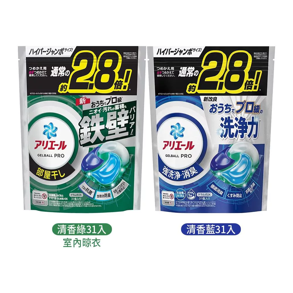 【P&G】洗衣抗菌PRO威力球/洗衣球補充包31顆_ 極淨型 (室內晾衣-清香綠)