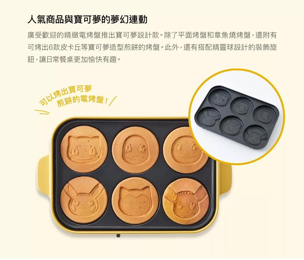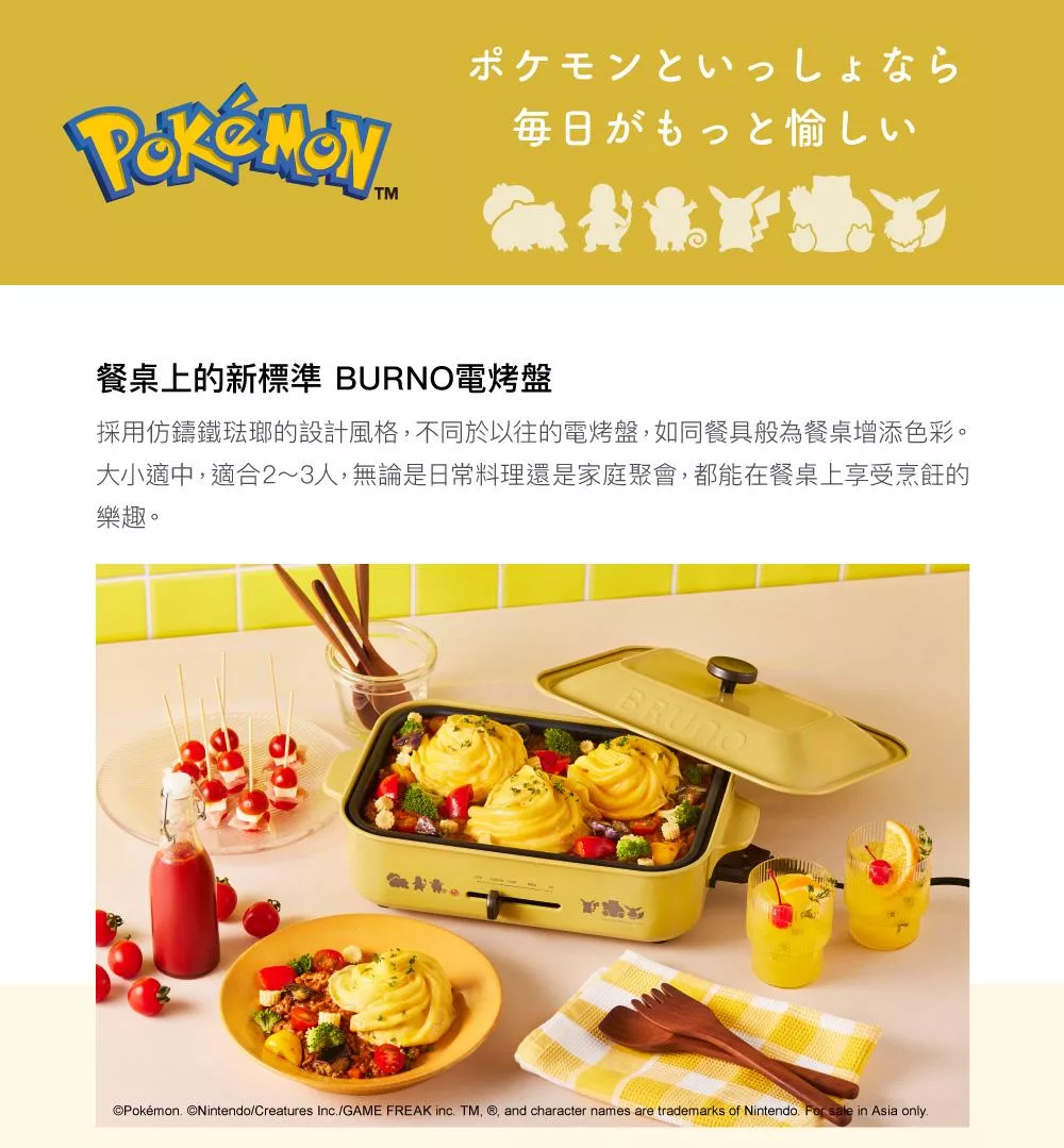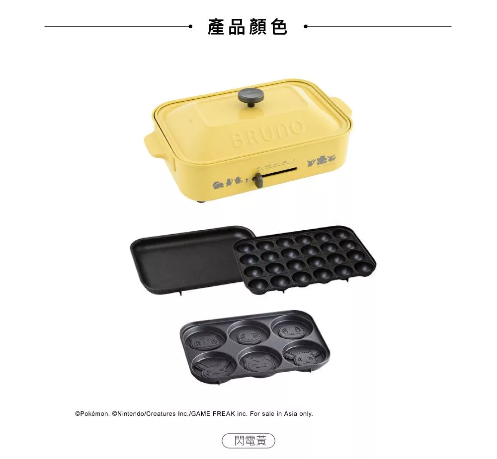 日本BRUNO x Pokemon BOE118YE聯名寶可夢多功能電烤盤