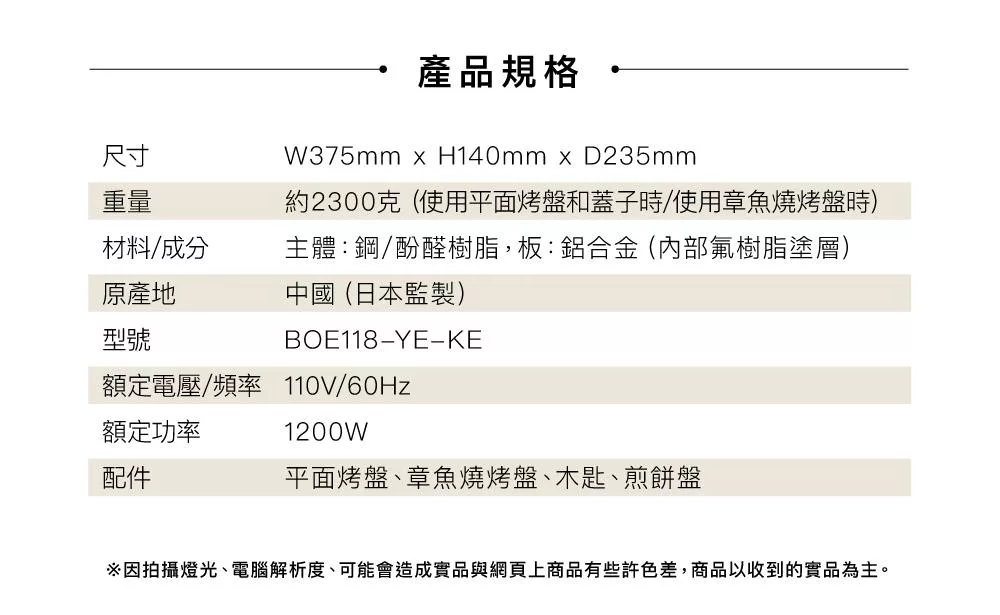 配件:平面烤盤、章魚燒烤盤、煎餅盤、木匙
