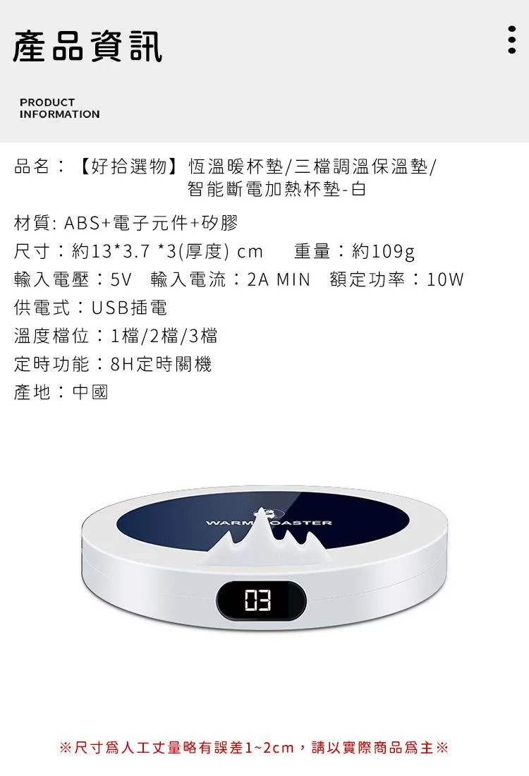 【好拾選物】恆溫暖杯墊/三檔調溫保溫墊/智能斷電加熱杯墊-白