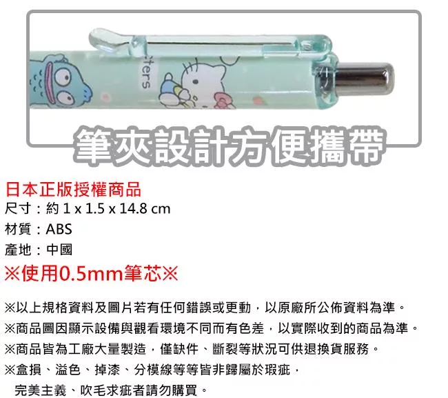 【日本正版授權】三麗鷗 50周年紀念 metacil light knock 自動鉛筆 按壓式 免削鉛筆/永恆鉛筆/永恆筆 - 淺藍款