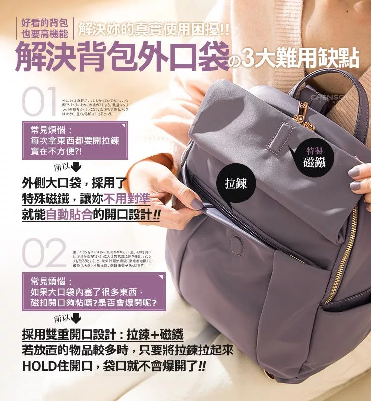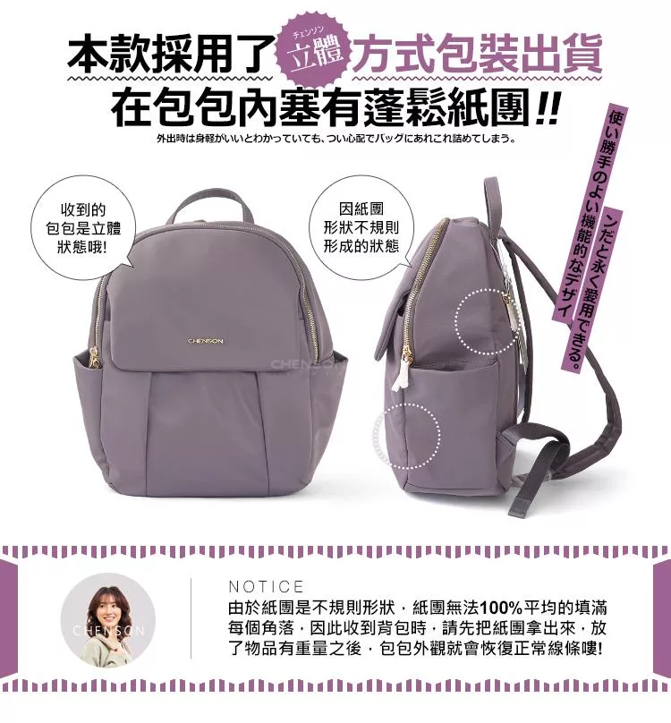 CHENSON 尼龍9口袋 媽媽包 後背包附水壺固定內口袋 (CG85110-U) 紫