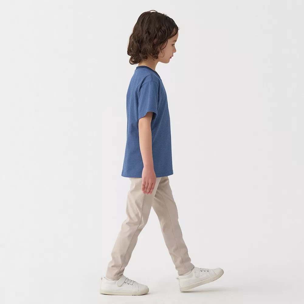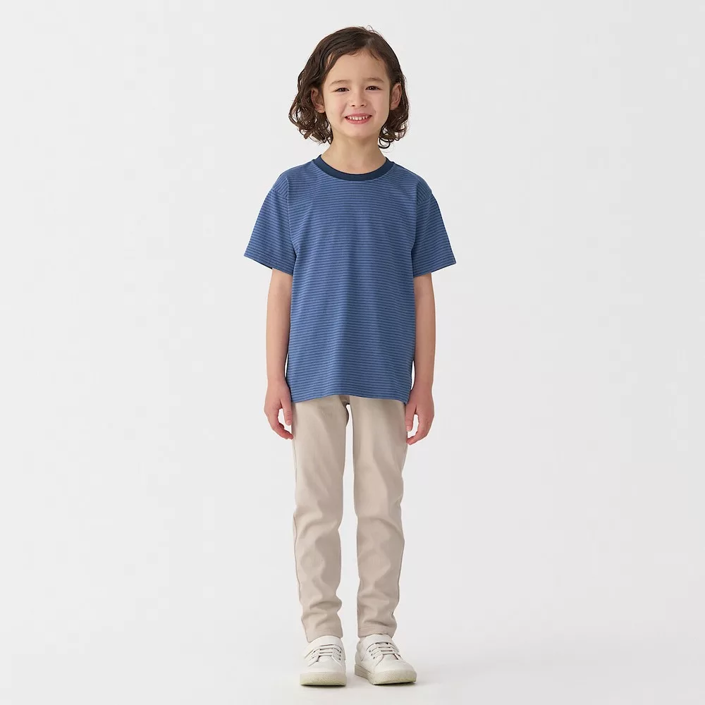 【MUJI 無印良品】兒童彈性丹寧感寬鬆舒適褲 120 暗藍
