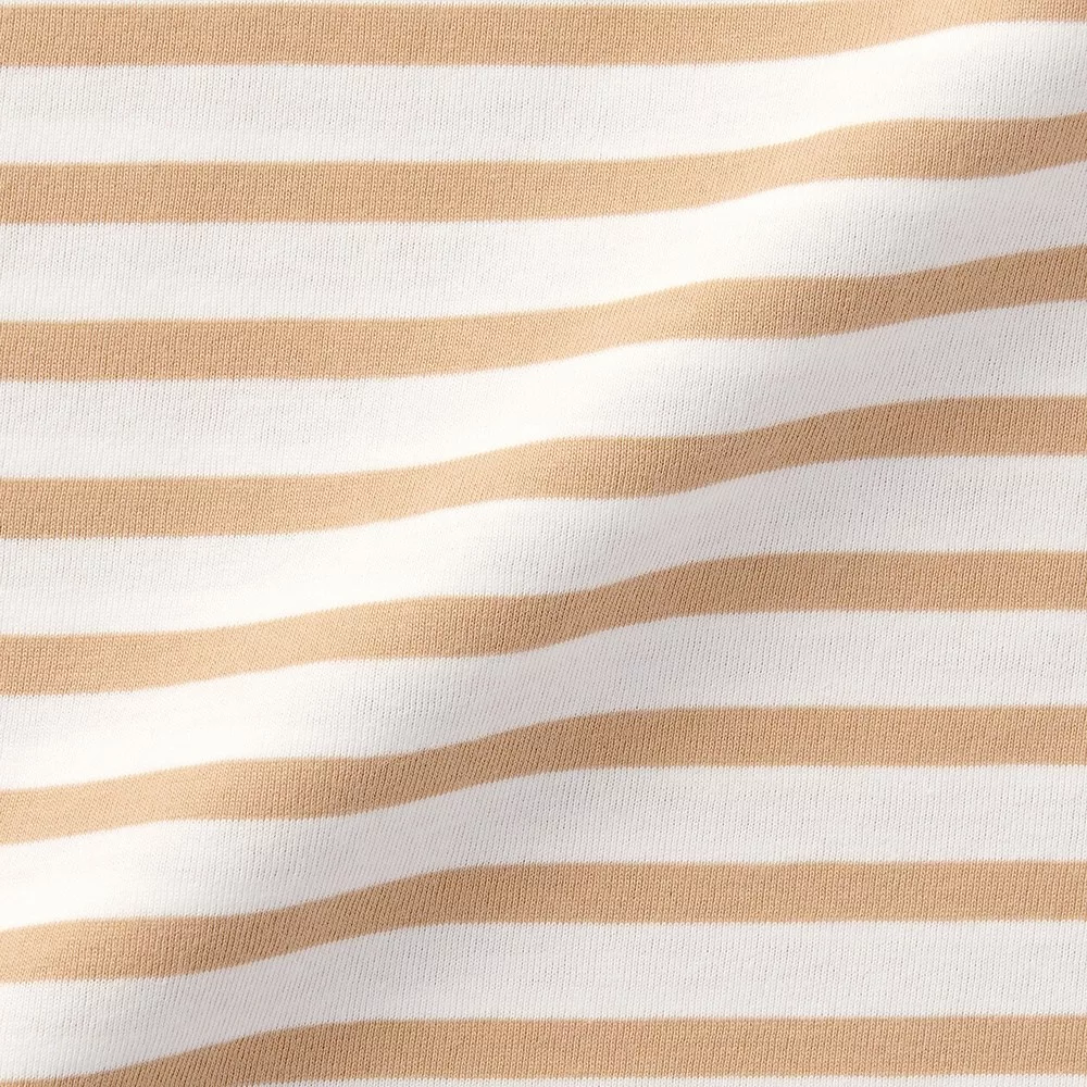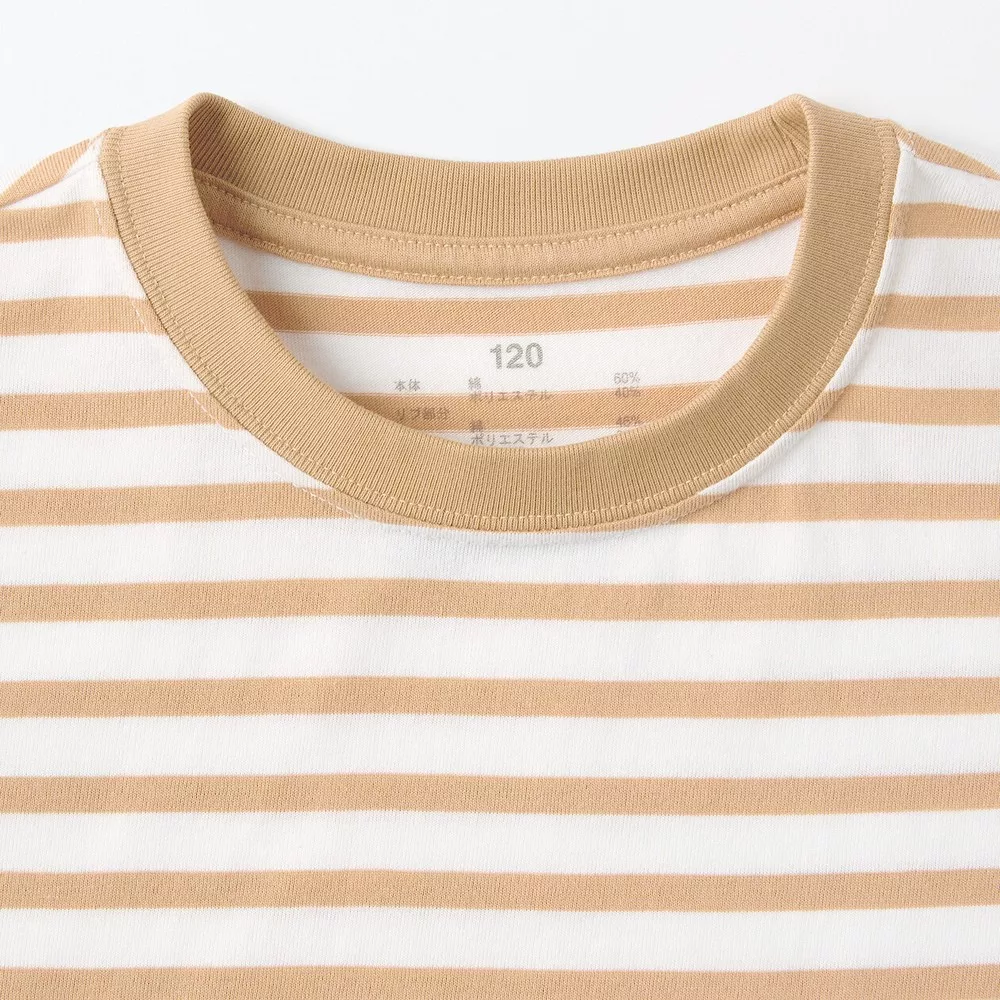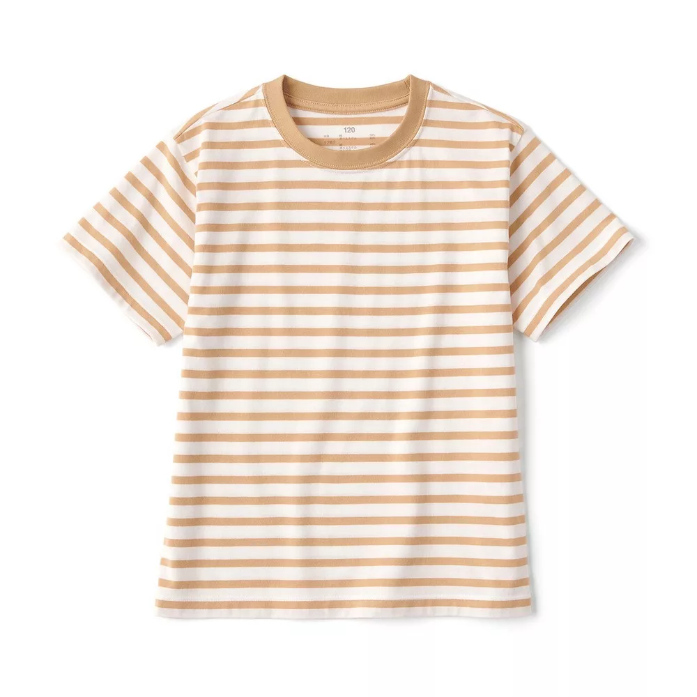 【MUJI 無印良品】兒童天竺圓領短袖T恤 110 卡其橫紋