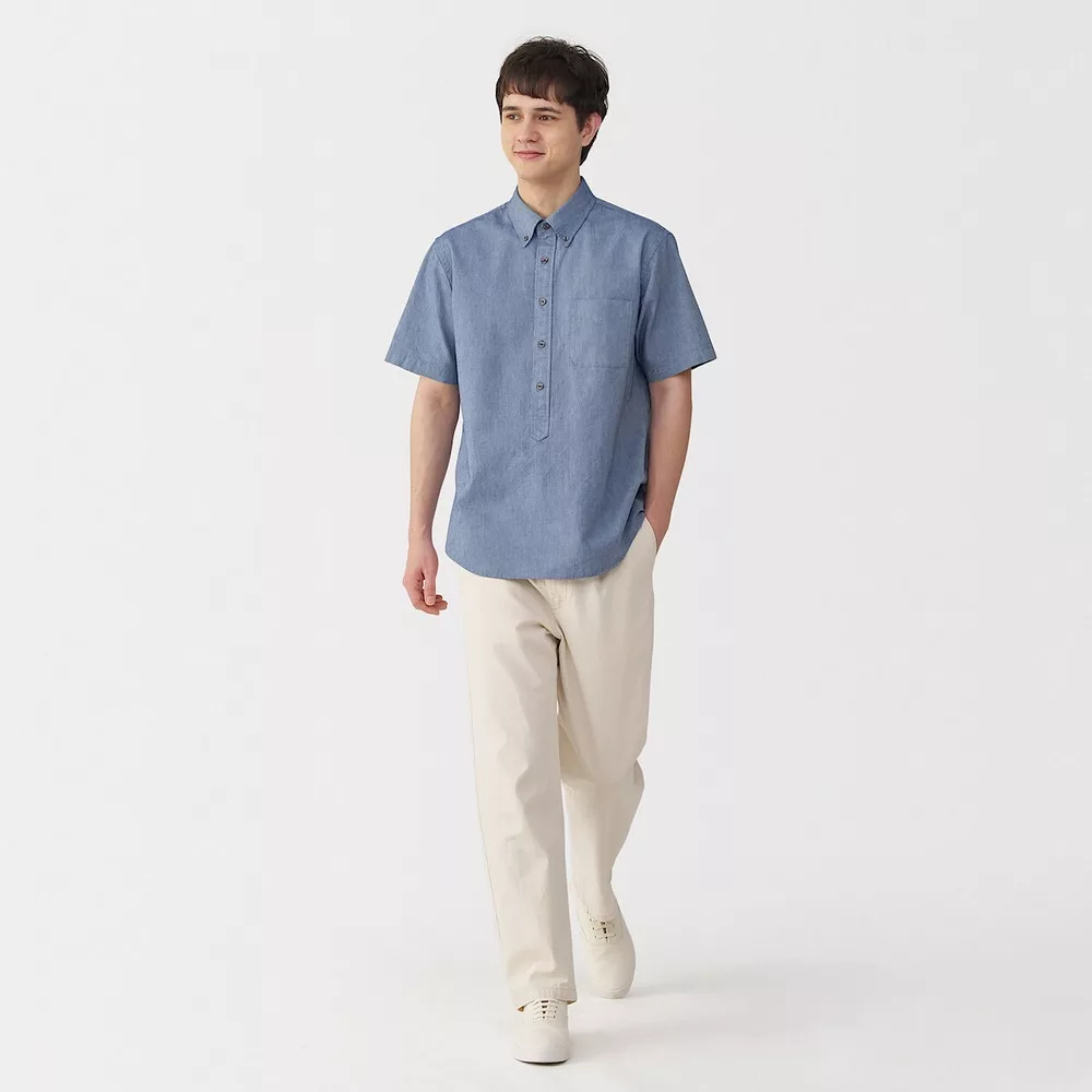 【MUJI 無印良品】男涼感短袖襯衫 S 煙燻綠